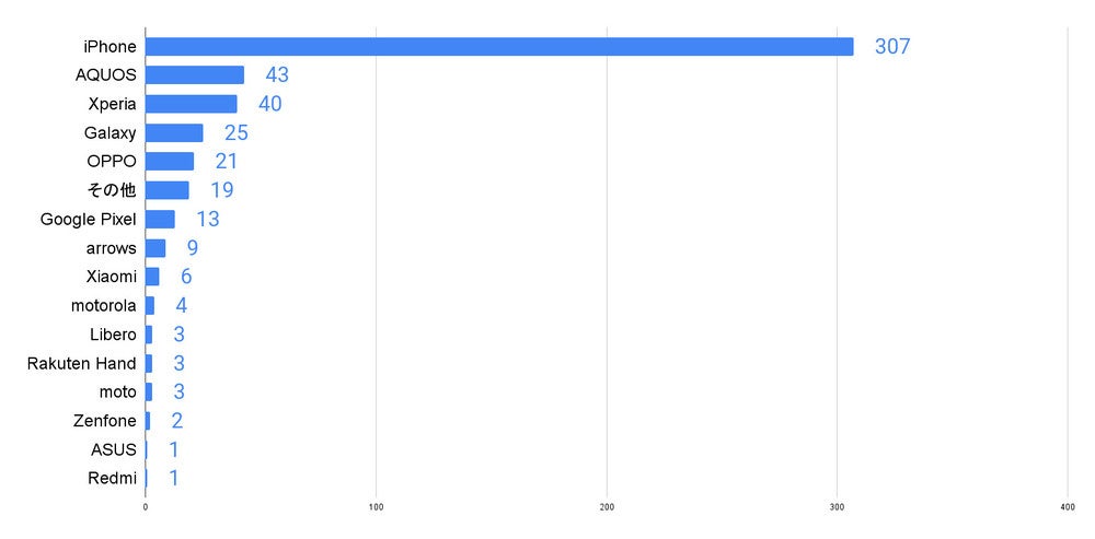 「現在お使いのスマホの機種を教えてください」という質問をしたところ、約6割の方がiPhoneを使用していました。