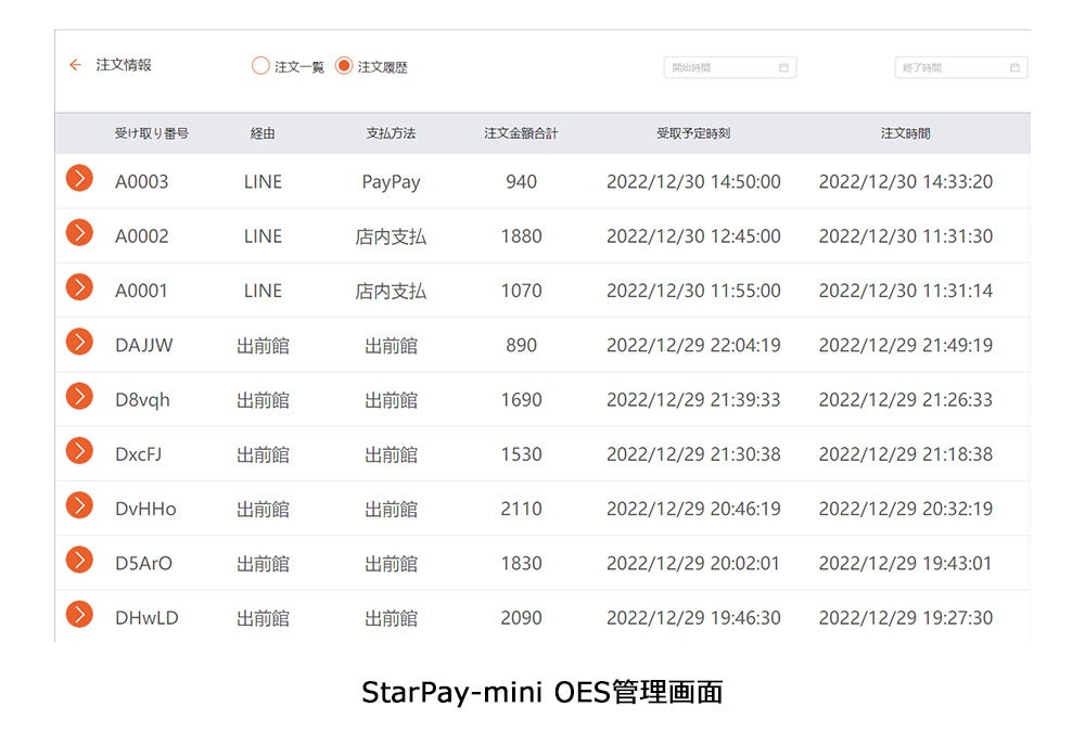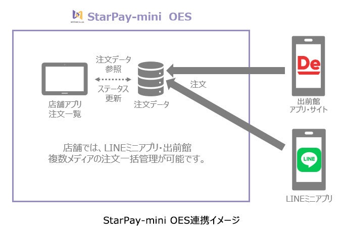また、今回、「StarPay-mini forグルメ」は複数のサービスからのオーダー管理に対応するOES(オーダーエントリーシステム)を実装しています。「天丼・天ぷら本舗 さん天」ではLINEミニアプリと、デリバリーサービス「出前館」からのオーダーを専用アプリで一括管理できるようになりました。店舗側は、利用するサービスプラットフォームごとにオーダー状況を確認する手間が省けることで、店頭スタッフの業務負荷の削減に繋がります。
