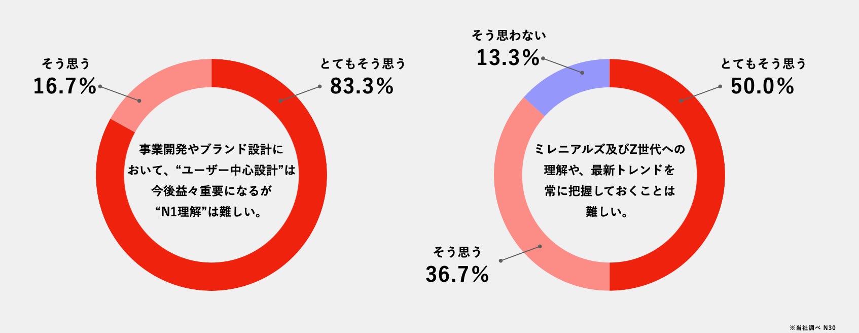 インサイト・コンパスの独自調査によれば、マーケティングや新規事業を担当する83.3%の担当者は、“ユーザー中心設計”をとても重要だと認識しているものの“N1理解”の難しさを感じていることが明らかになりました。