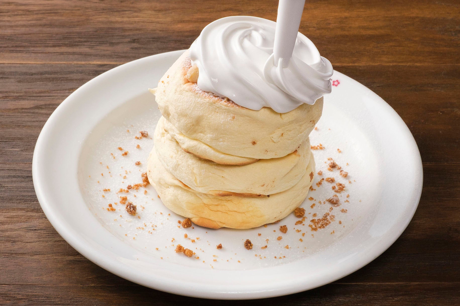 店名にもなっているメレンゲを加えた生地は、混ぜ方や寛がせる時間も作る上での重要なポイントとなり、調理工程一つ一つにもこだわりを持って作り上げています。そこで生み出されたパンケーキを口に運んだ瞬間、「こぼれる笑顔と幸福感」で満たされるでしょう。