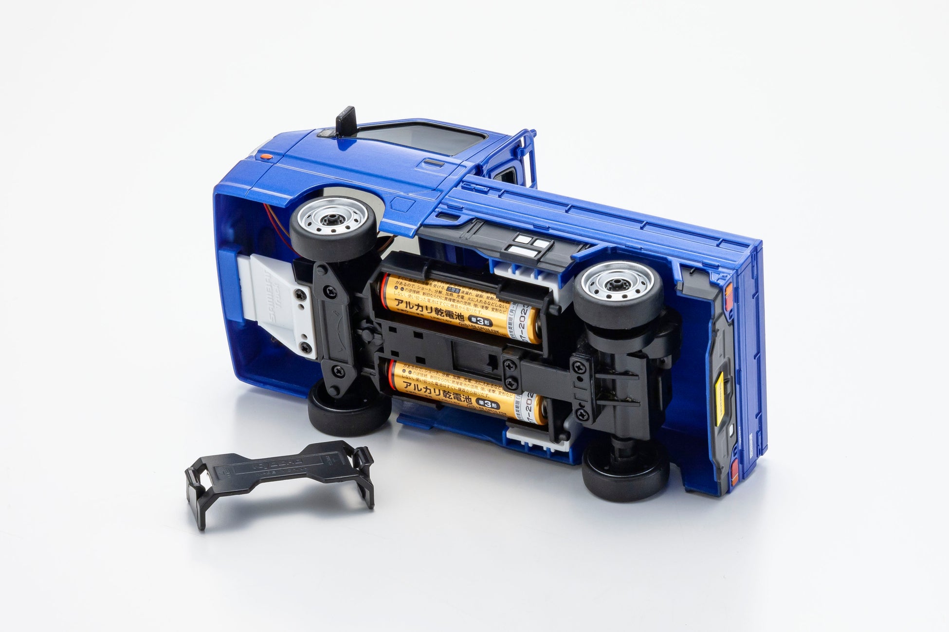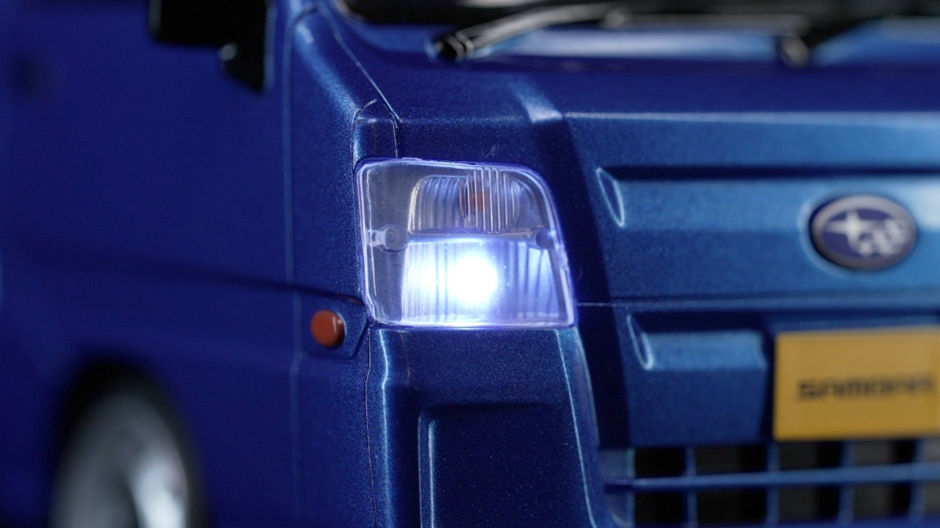 WRブルーリミテッドのブルーメタリックカラーを忠実に再現はもちろん、カーモデルとして大切なフェイスのディテール、リアガラスを保護する鳥居、エンジンフード、ヒンジ、エンブレム等、荷台の作り込みにも傾注。モノを積んだり、ドレスアップ等、ユーザーの遊び心を加えることで、インテリアグッズや小道具として幾通りにもディスプレイを楽しむことができます。走行時にはヘッドライトとテールランプが点灯し、R/Cモデルとしての臨場感もバッチリです。