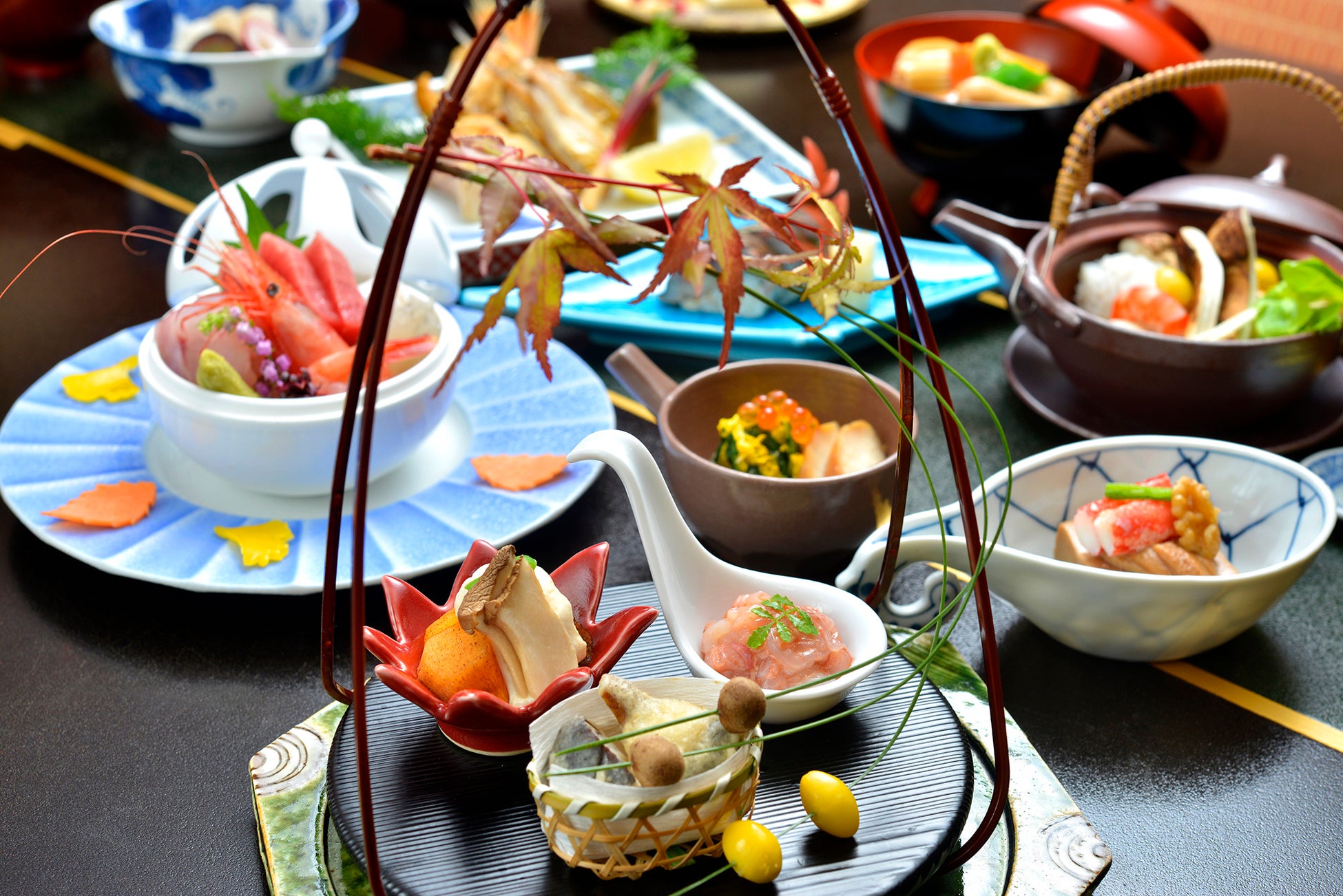 日本三名山のひとつ、白山の清流が注ぎ込む日本海の好漁場から揚がる旬の魚介、肥沃な加賀平野に実る加賀蓮根や百万石椎茸など金沢の“じわもん(地物)”をメインに、実りの秋を代表する松茸などの食材を盛り込みました。多くの食通を魅了してやまない加賀料理の真髄をご堪能いただけるコースです。