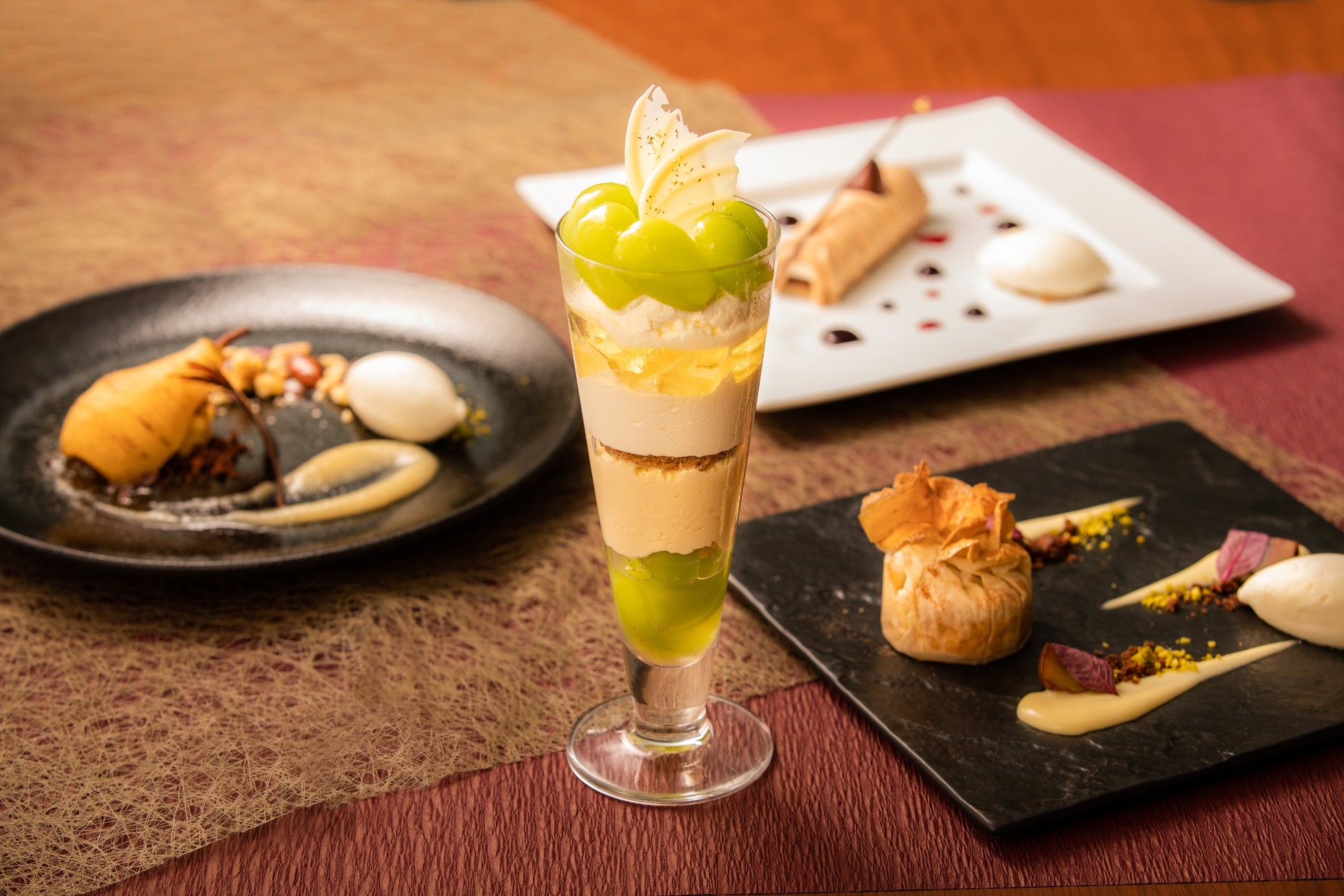 「ポム・ダダン」では、季節の素材を用いたまるでアートのような斬新な盛り付けで魅了する4品のデザート「秋のパティシエスペシャリティーズ」をご用意しました。