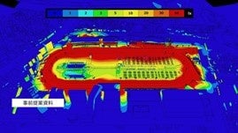 今回のプロジェクトでは、3次元測量により競馬場施設内外の点群データを取得し、現状を再現する3Dモデルを作成することで、建築や地形、周囲環境の特徴を細部まで把握し、お客様の課題を解決する照明設計を行っています。