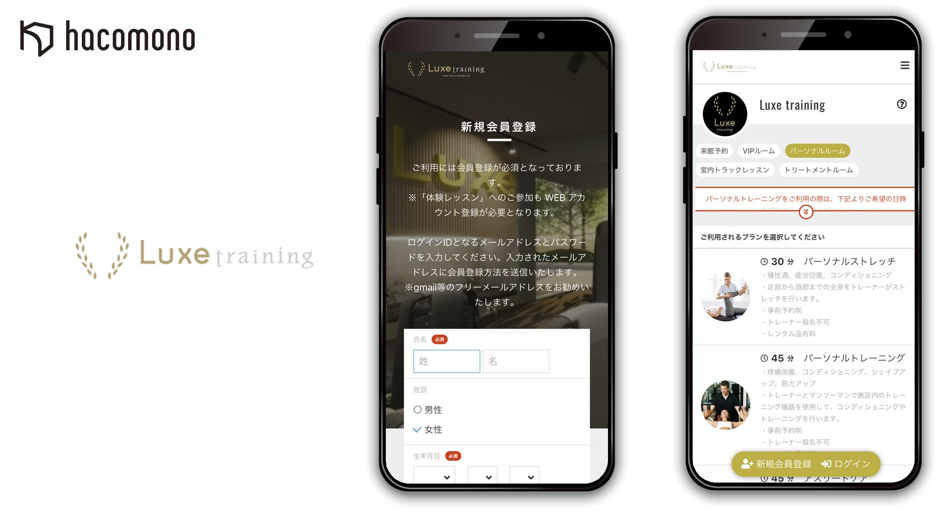 株式会社hacomono(東京都豊島区:代表取締役 蓮田 健一)が提供する店舗運営のための会員管理・予約・決済プラットフォーム「hacomono(ハコモノ)」を、Luxe Laurel株式会社(本社:富山県富山市/代表取締役:石川 英明)が運営する「Luxe training」へ導入いたしました。入退館やフロント業務をオンライン化することで、今後の店舗運営の成長基盤を強化します。