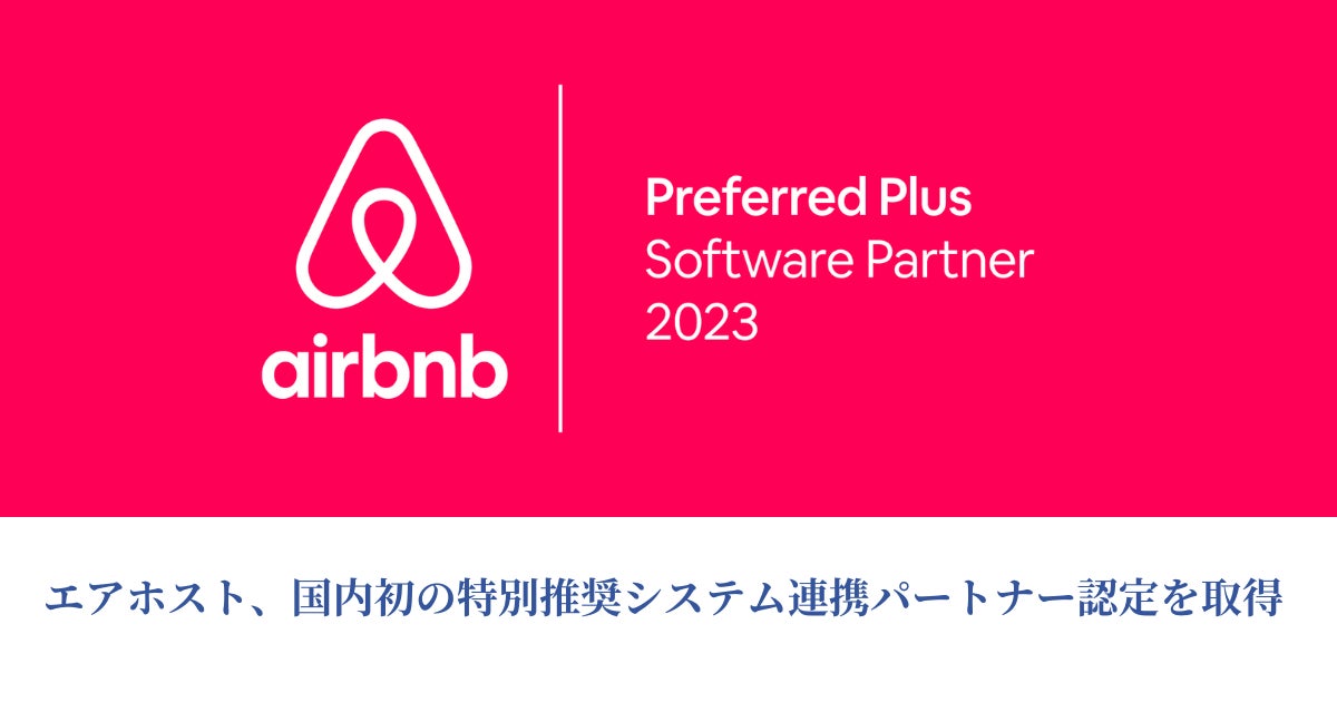 エアホスト、2023年 Airbnb Preferred Plus Software Partner(Airbnb特別推奨システム連携パートナー)認定を獲得