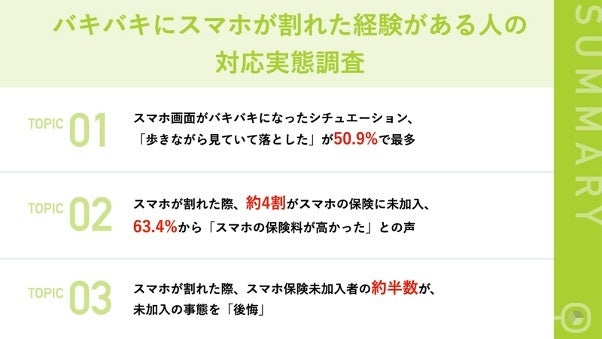- 約半数がスマホを割ってしまった際に、保険未加入だったことを「後悔」