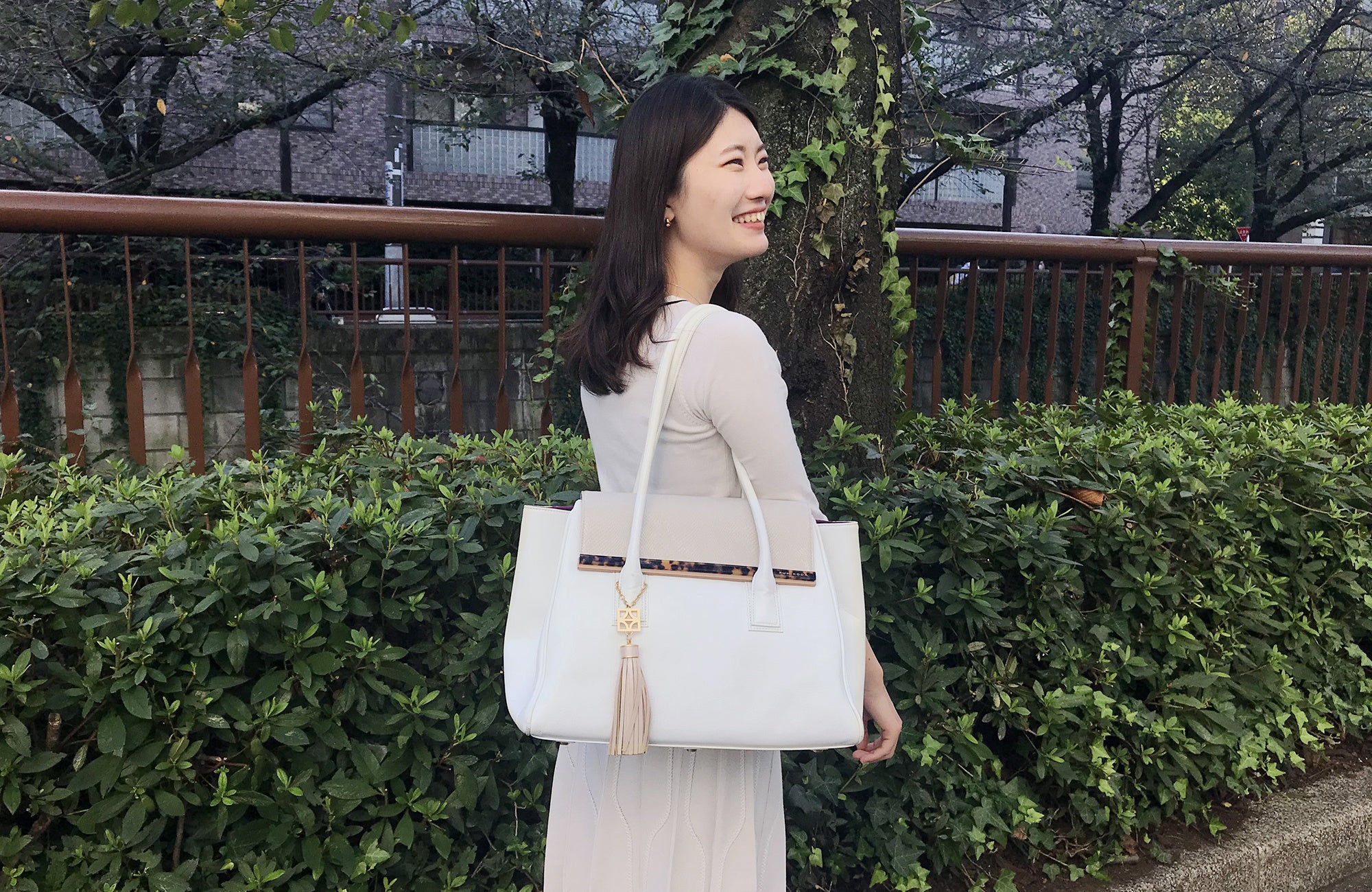 「FUMIKODAのことはそれまで知りませんでしたが、ホームページを拝見して、自分もこんな素敵なバッグを持ってみたいと思いました。エシカルという言葉も、そのときに初めて知りました」