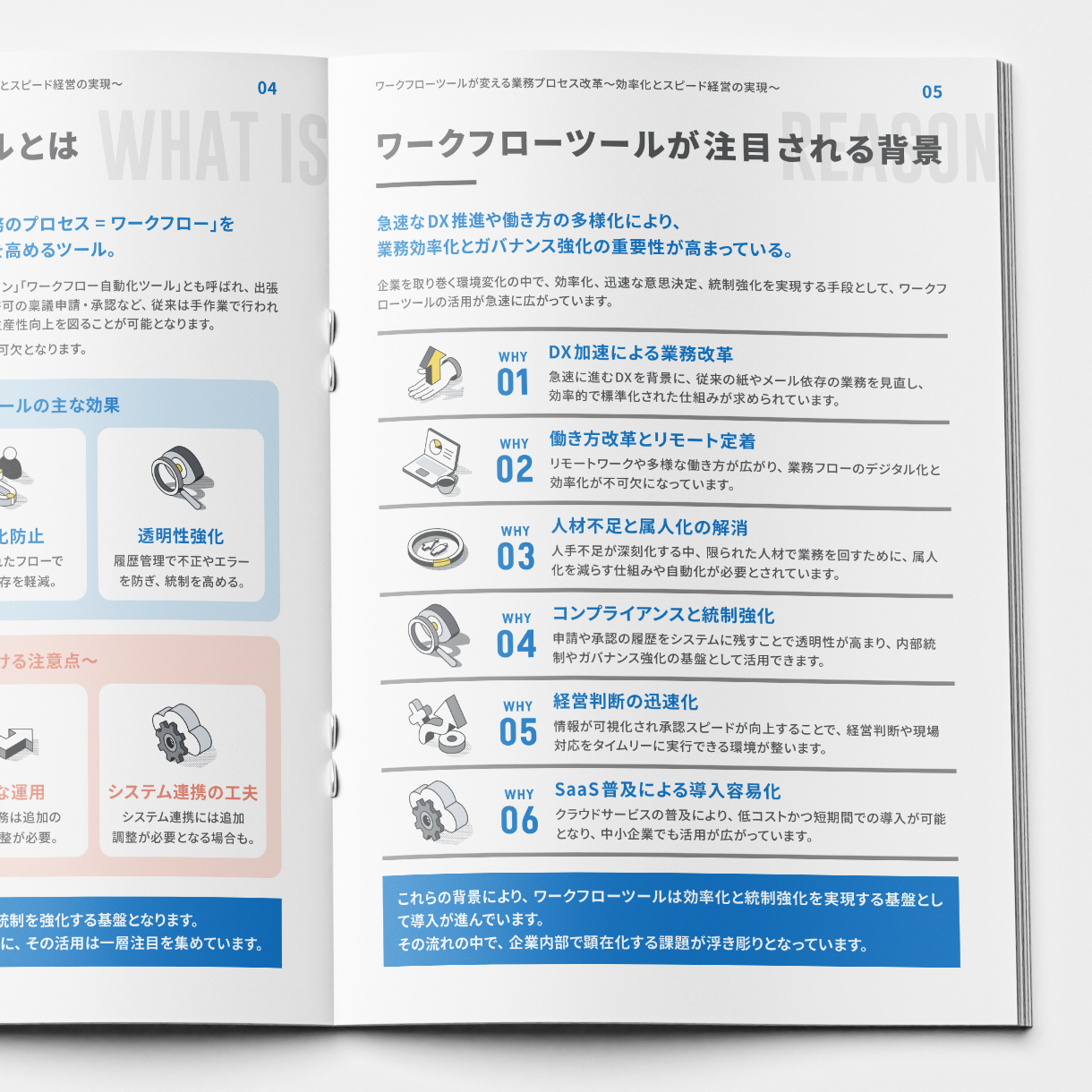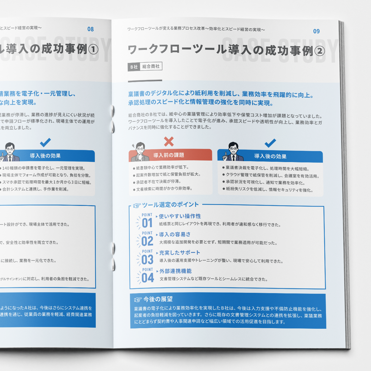 本資料では、ワークフローツールの特徴を踏まえ、業務効率化や経営判断のスピード強化に貢献する導入メリットと、その活用方法について具体的な事例とともに解説します。