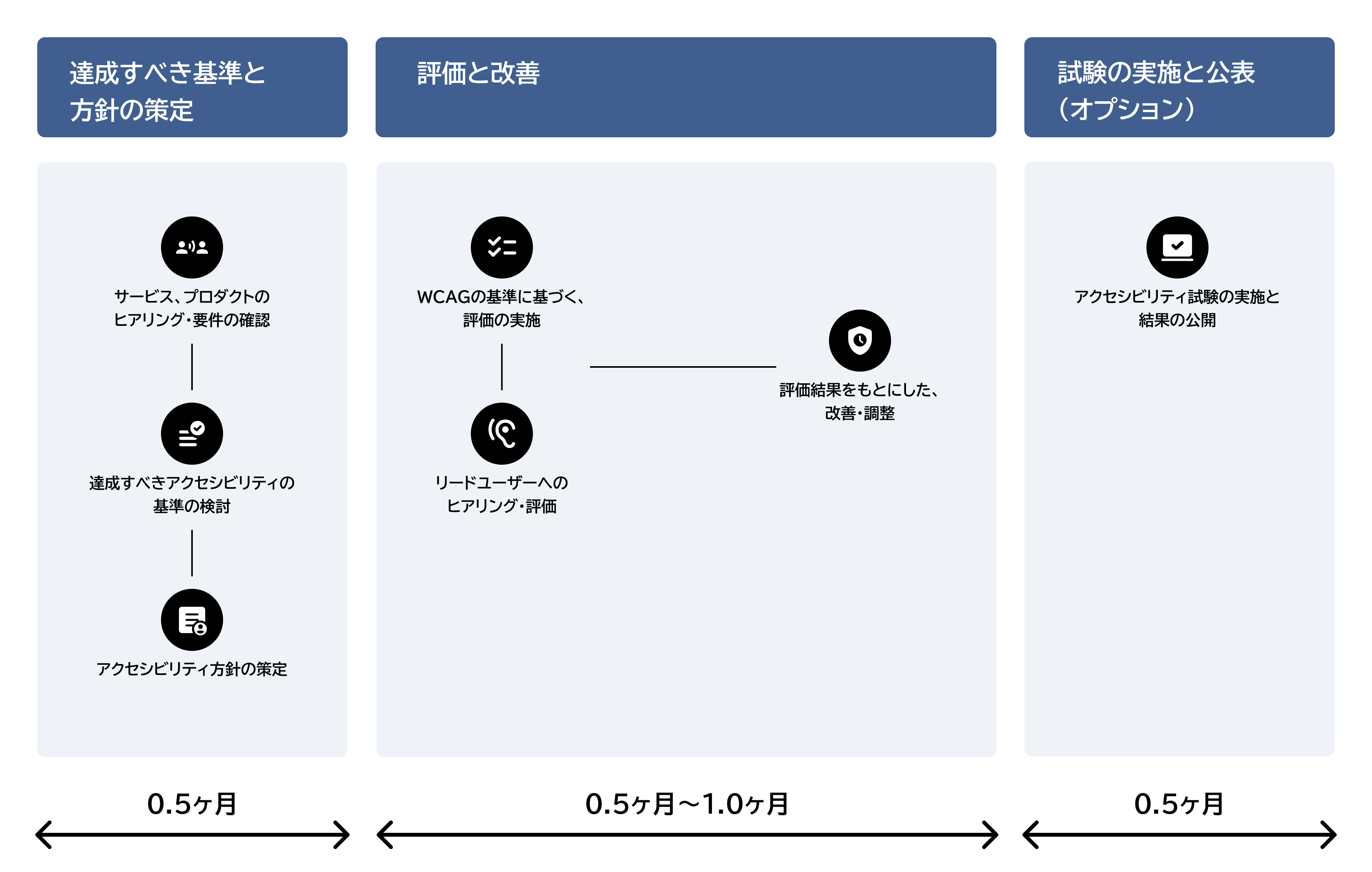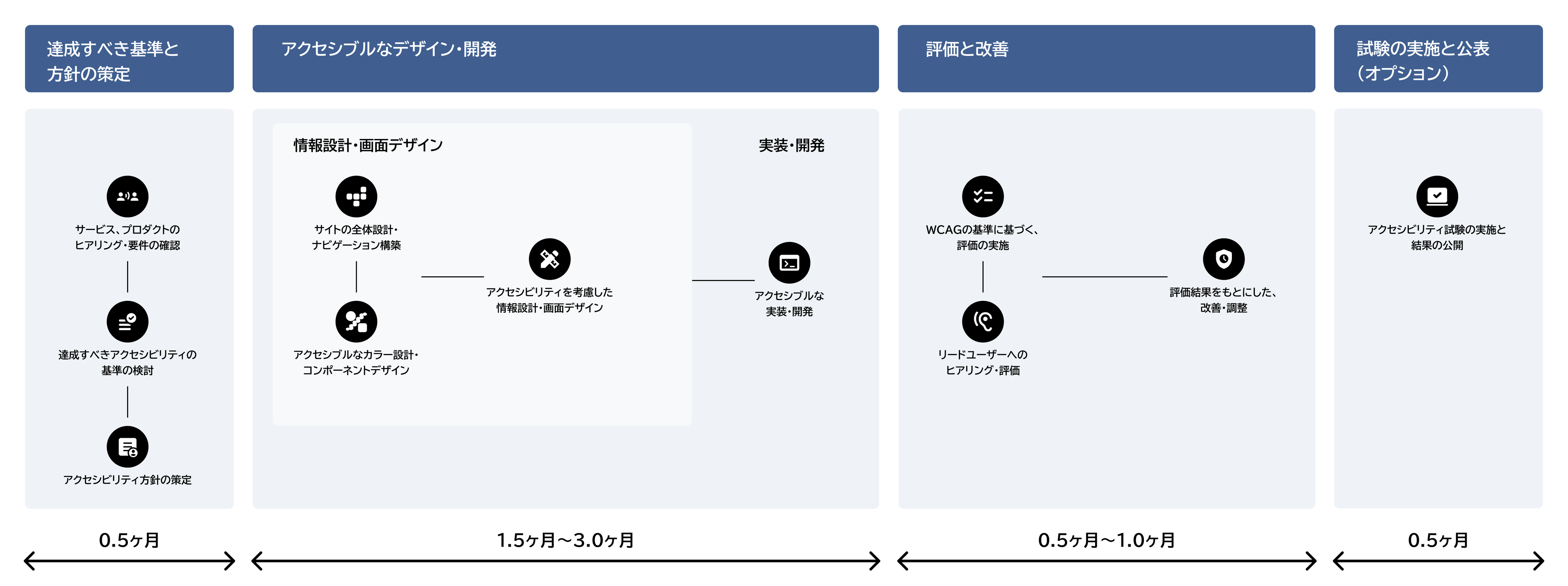 また、オプションとしてアクセシビリティ試験の実施とその結果の公表もおこなうことも可能です。