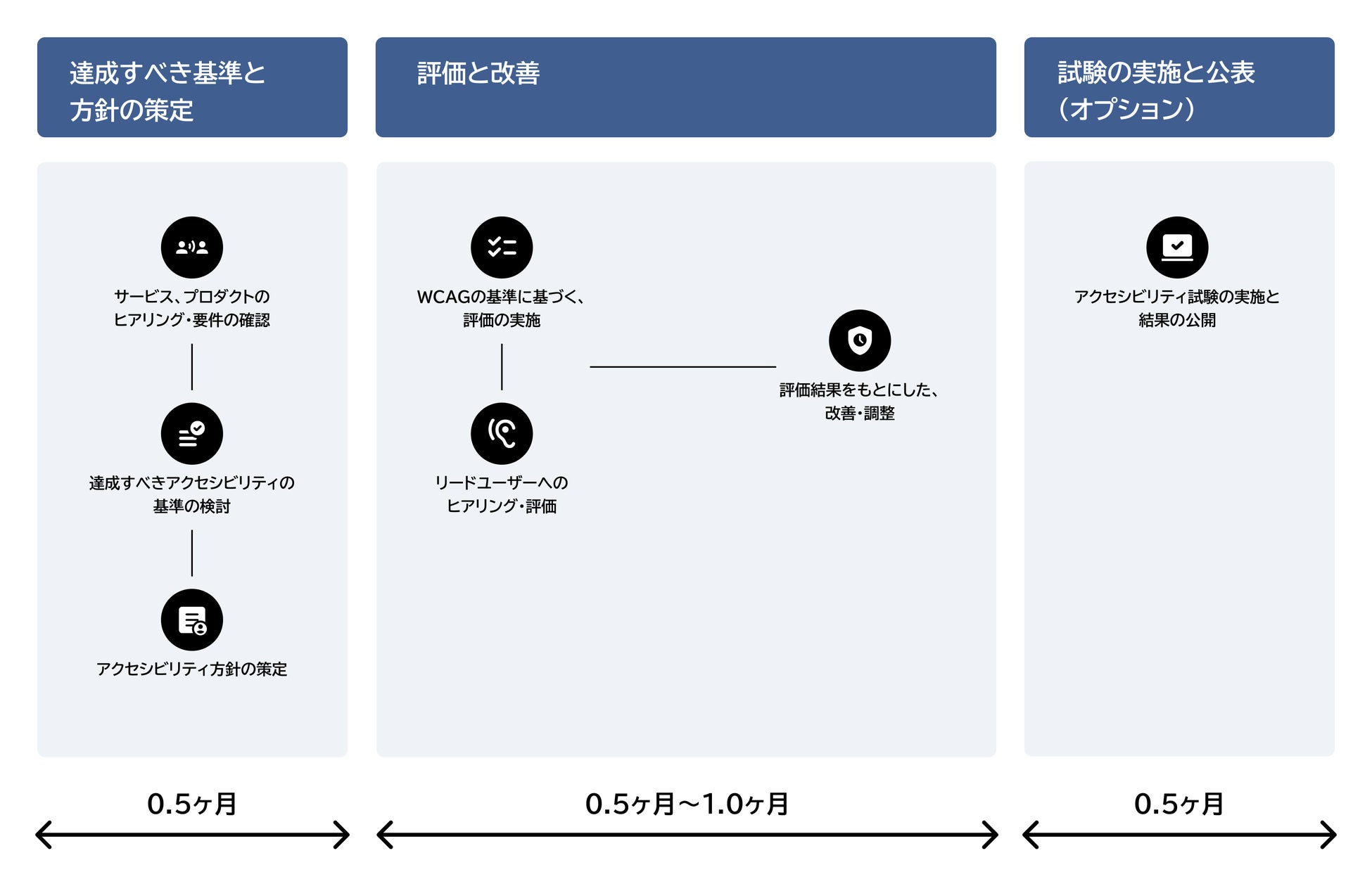 また、オプションとしてアクセシビリティ試験の実施とその結果の公表もおこなうことが可能です。