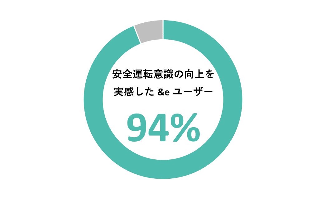 安全運転に繋がる情報の提供や、IoTセンサーと位置情報の組み合わせによる運転中の挙動診断、運転のスコア化など、安全運転をサポートする「&e」の機能により、「&e」をご利用のお客さまの94%が安全運転意識が高まった*と実感しています。