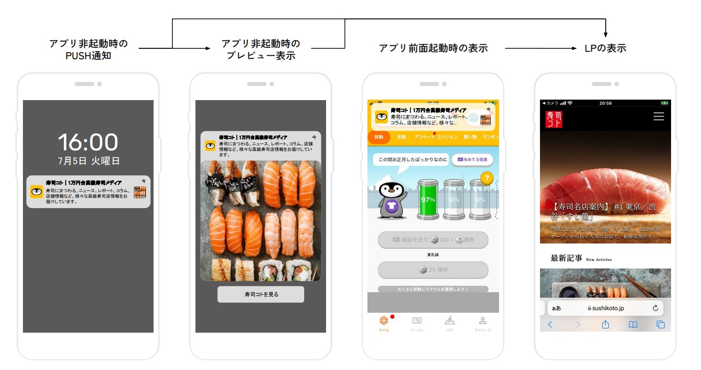 位置情報マーケティングプラットフォーム「pinable」を提供する株式会社スイッチスマイル(本社:東京都千代⽥区、代表取締役社⻑:⻑橋⼤蔵、以下、スイッチスマイル)は、株式会社ソトコト・プラネット(本社:東京都渋⾕区、代表取締役社長:⼤久保清彦、指出一正、以下、ソトコト・プラネット)・株式会社メトロアドエージェンシー(本社:東京都港区、代表取締役社長 肥後謙一)と協力し、5/3(⽕)〜5/17(⽕)まで東京メトロ銀座線で実施する「未来を作るSDGsマガジン『ソトコト×寿司コト』」のプロモーションにおいて交通広告(OOH)と連動したアプリプッシュ広告配信を、ビーコンを使った位置情報アドプラットフォーム「pinable Ad」で実施いたします。