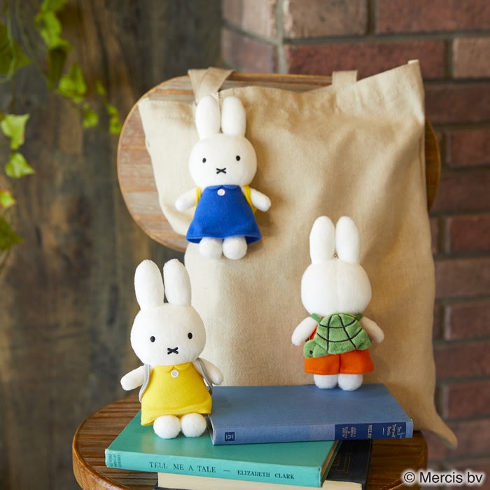 ミッフィ―の大切なくまのぬいぐるみ(くまちゃん)や『うさこちゃんとどうぶつえん』(ディック・ブルーナ文絵/いしいももこ訳 福音館書店)の絵本に出てくるカメ・ゾウ のリュックを背負ったデザインです。
