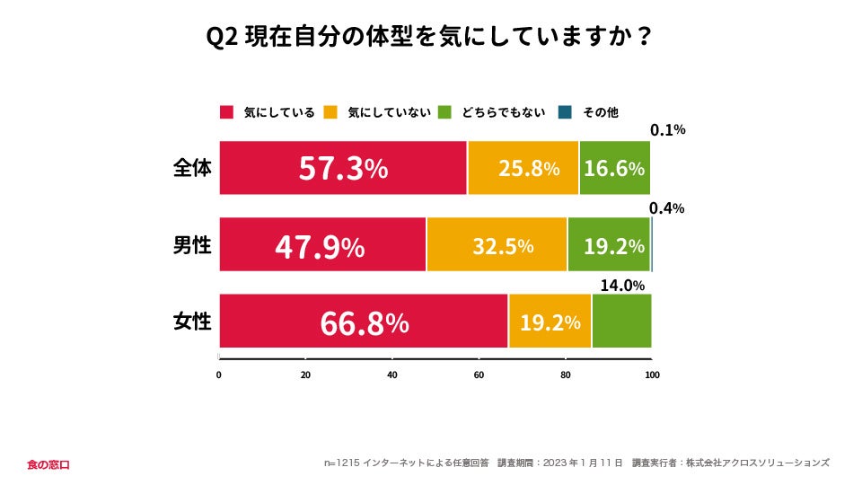 Q2 男性よりも女性のほうが自分の現在の体型を気にしている(男性:47.9% 女性:66.8%)