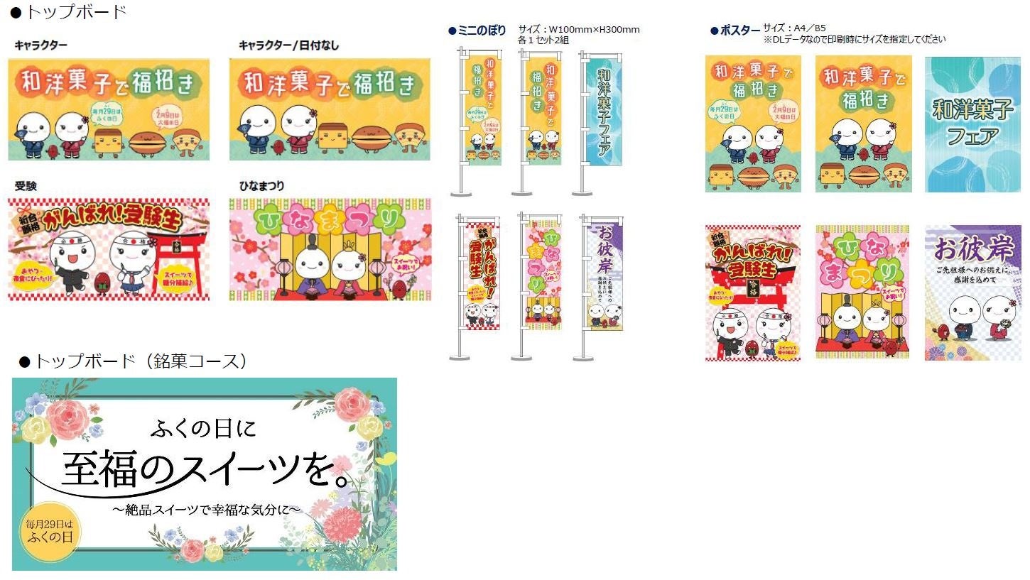 従来の「ふくの日」販促物等を使い、和洋生菓子売場を盛り上げるための売場企画です。