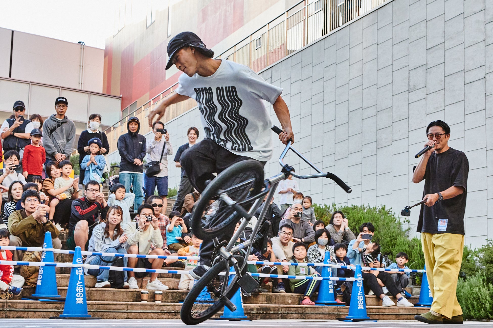 体験の合間には、各種目のプロによるパフォーマンスショーを午後に2回実施。目の前で繰り広げられるハイレベルな技の数々は、見ているだけでもアーバンスポーツの魅力を存分に感じられる時間です。