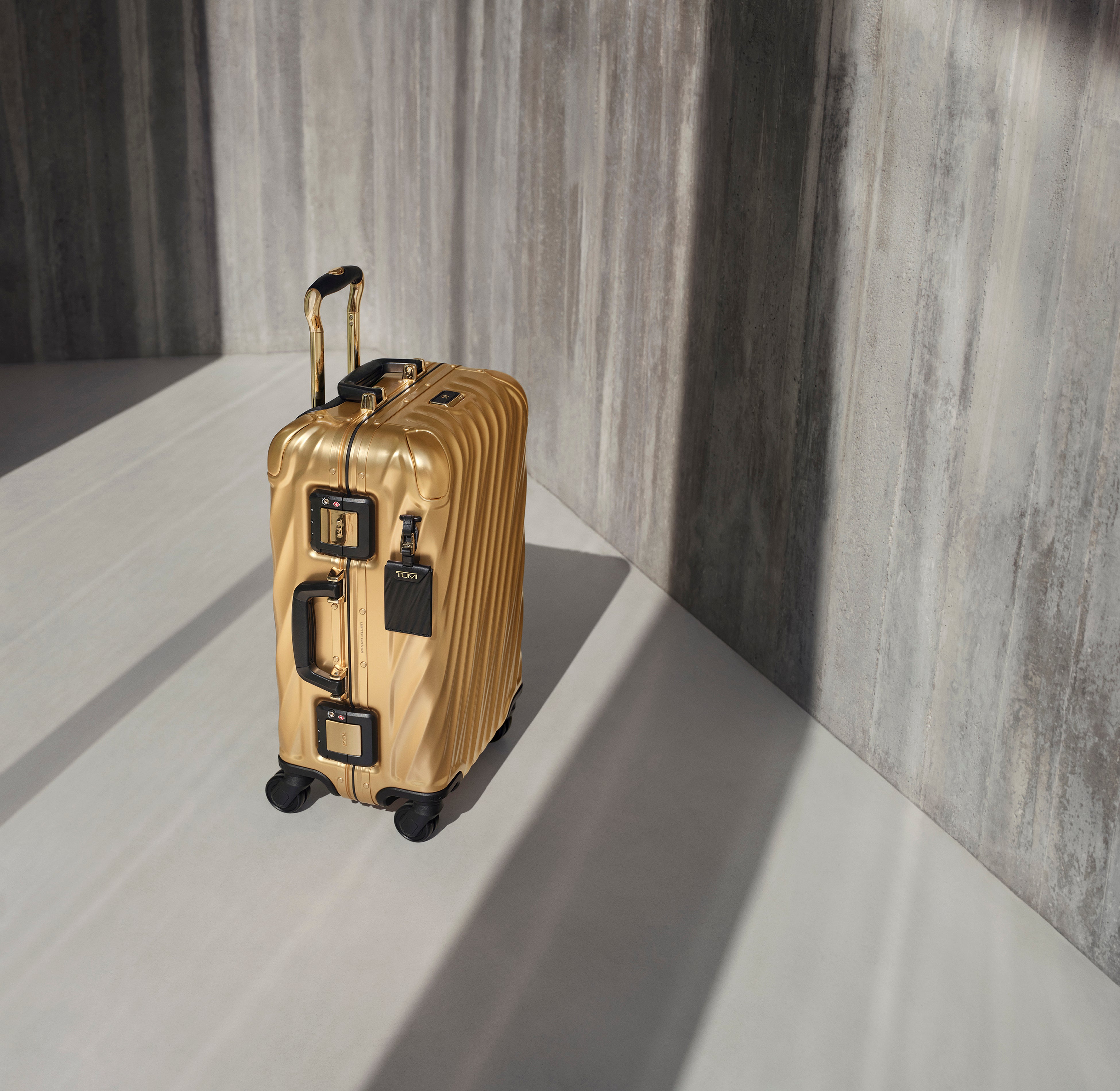 「創業50年を記念する、本当に特別なことをしたいと考えました。」と、トゥミのクリエイティブ・ディレクター、ヴィクター・サンズは語ります。「そして、創業50年を祝う最高の方法は、トゥミのアイコニックな19 Degreeのデザインに、大胆なメタリックゴールドのアレンジを加えることだと思ったのです。この特別に生産された数量限定のコレクションは、過去を称え、未来を見据えるものです。50年にわたって、デザインとクラフトマンシップの限界に挑戦し続けてきた軌跡と、これからの歩みを祝福する、革新、スタイル、そして祝意が完璧に融合したコレクションです。」