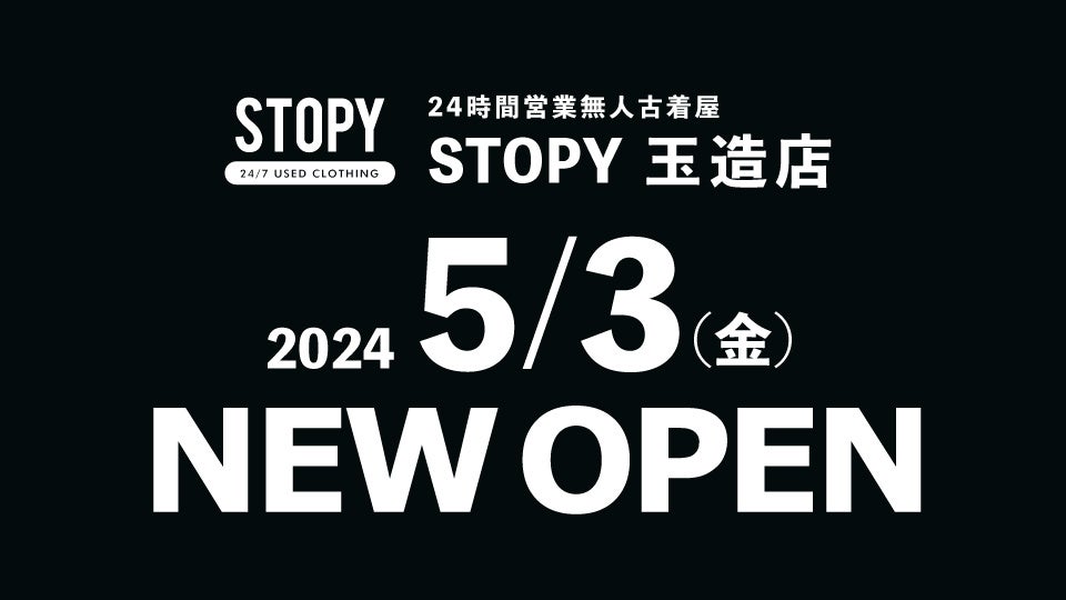 株式会社JAM TRADINGが運営する24時間営業の無人古着屋「STOPY(ストッピー)」が2024年5月3日(金)に大阪市天王寺区は玉造に出店。