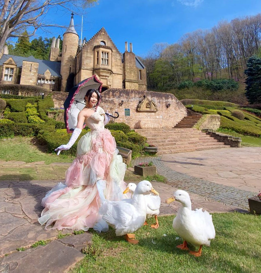 「ドレスを着てアヒルと一緒に記念撮影」は、ここでしか撮れない「映える」1枚。