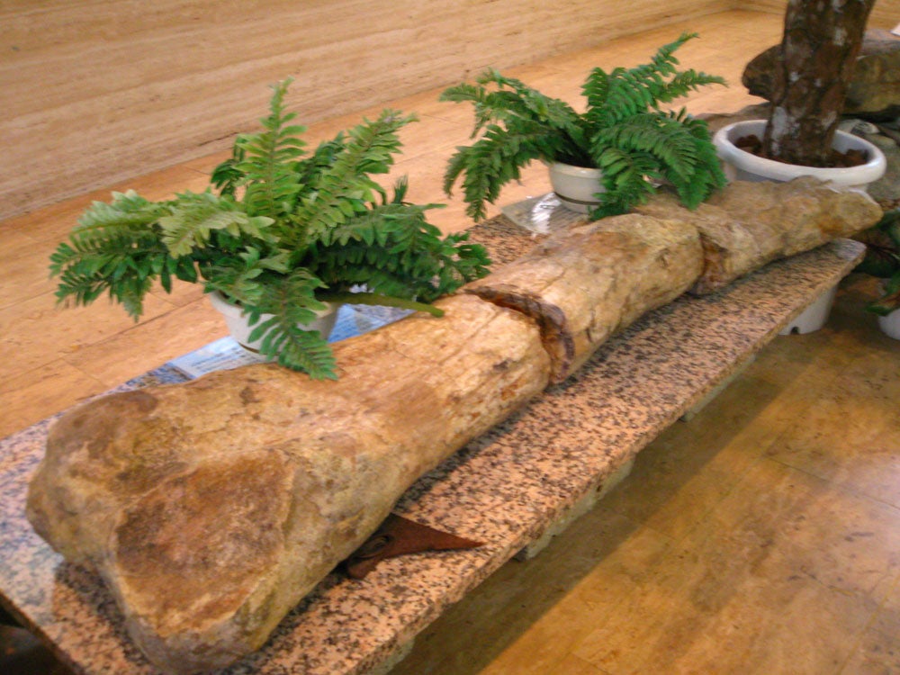 古城の一角にて、本物の恐竜の骨を特別展示。