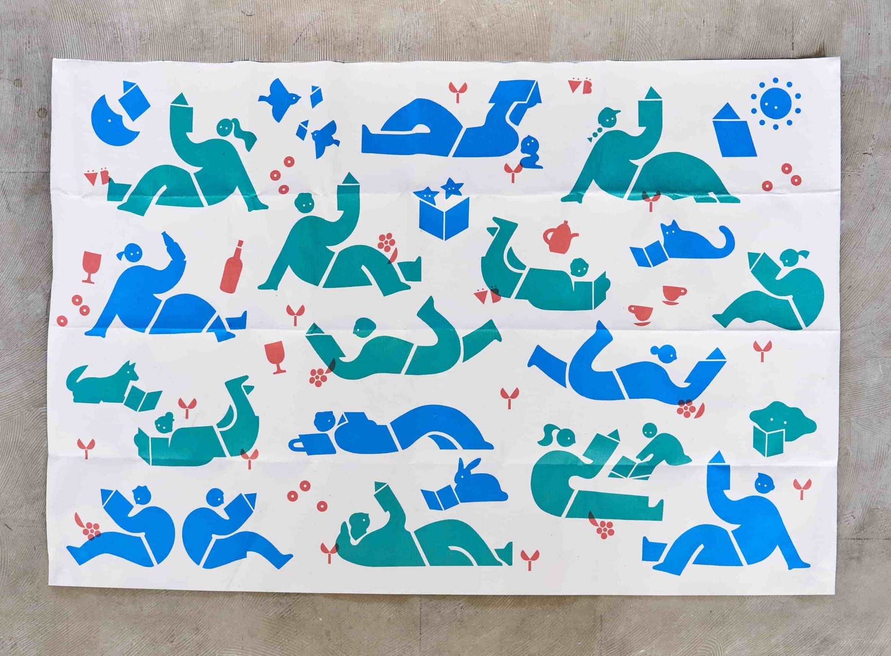 「本だったピクニックラグ」に使用している紙素材の約70%は、“本だった紙”です。残り約30%には、その他の再生紙を使用しています。紙素材でありながら、裏面にラミネート加工を施すことで水をはじきやすく、濡れた芝生の上でも使えます。