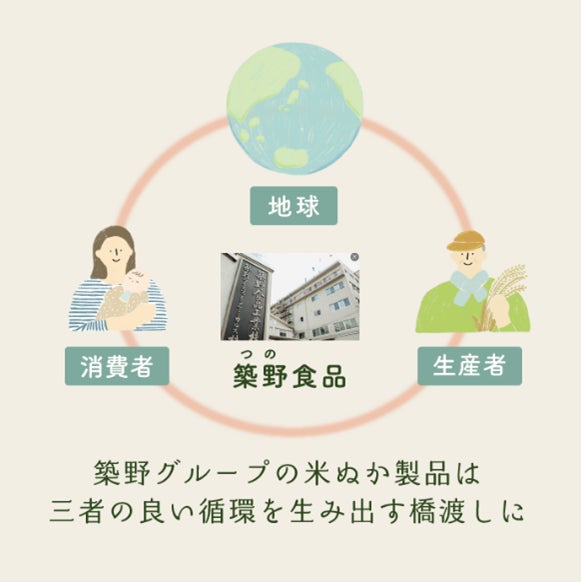国内生産の米ぬかをフル活用する築野グループのものづくりは地球、生産者、消費者の三者の良い循環に繋がっています。