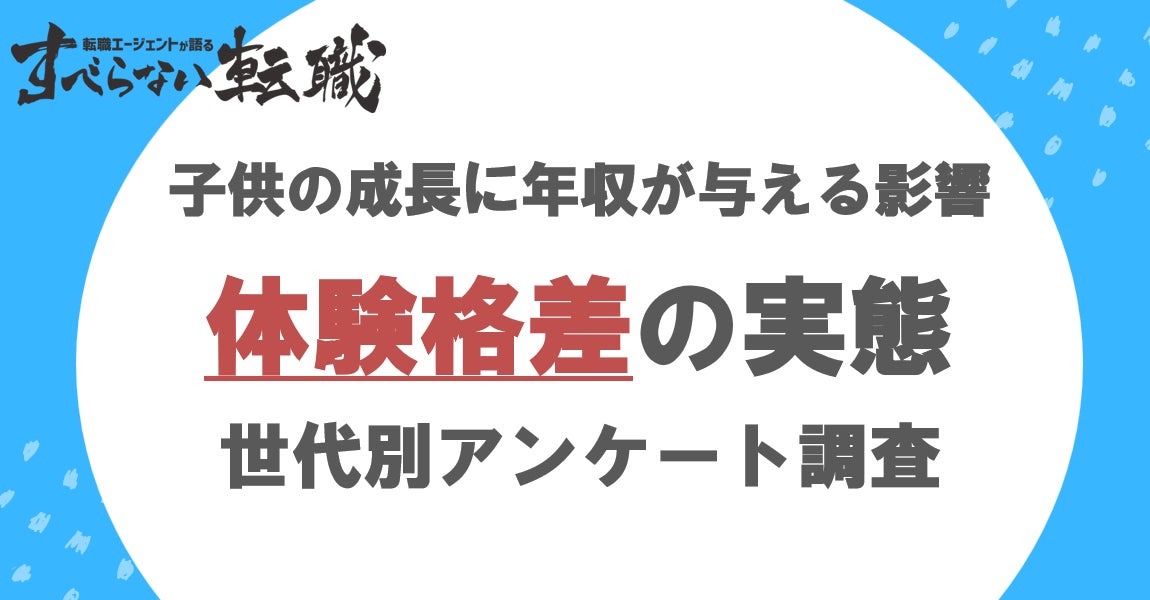 アクシス株式会社(本社:東京都港区、代表取締役:末永雄大)が運営する転職・キャリアノウハウメディア「すべらない転職」は、日本国内で働く20代から60代300名を対象に、「体験格差」に関する意識調査を実施しました。