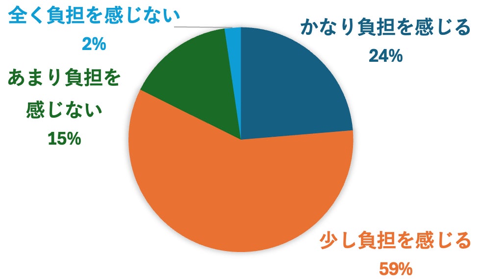 また、家族で文化イベントや芸術展などに「毎月行っている」と回答した人は7%と非常に少なく、「半年に1回行っている」が40%と最も多い回答でした。この体験機会への支出が負担に感じると回答した人は全体の6割と半数を超えていました。そして、学習機会への支出が家計に対してかなり負担に感じると回答した人は24%、少し負担に感じると回答した人は59%、過半数を超える人が負担に感じていることが分かりました。