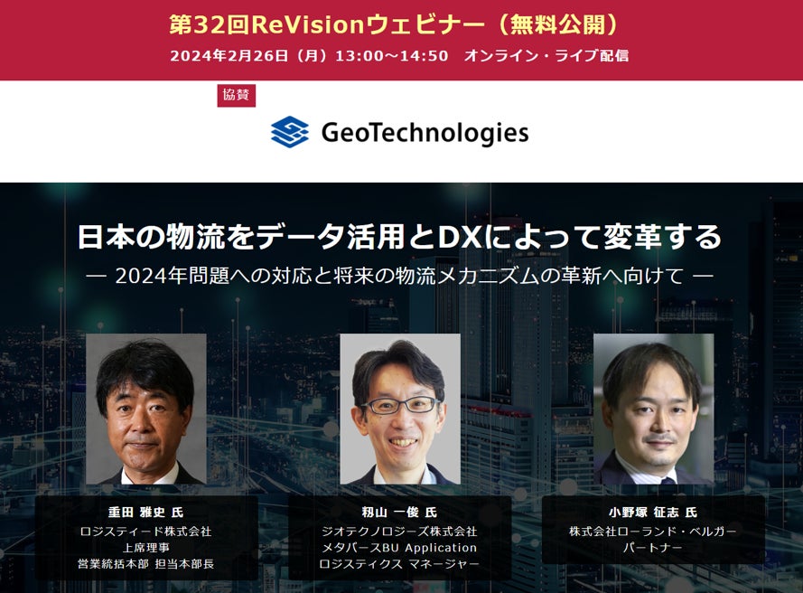 【無料WEBセミナー】ロジスティード、ジオテクノロジーズ、ローランド・ベルガーから講師を迎え、「データ活用とDXによる物流の変革」について無料ライブ配信 ― 2月26日(月)