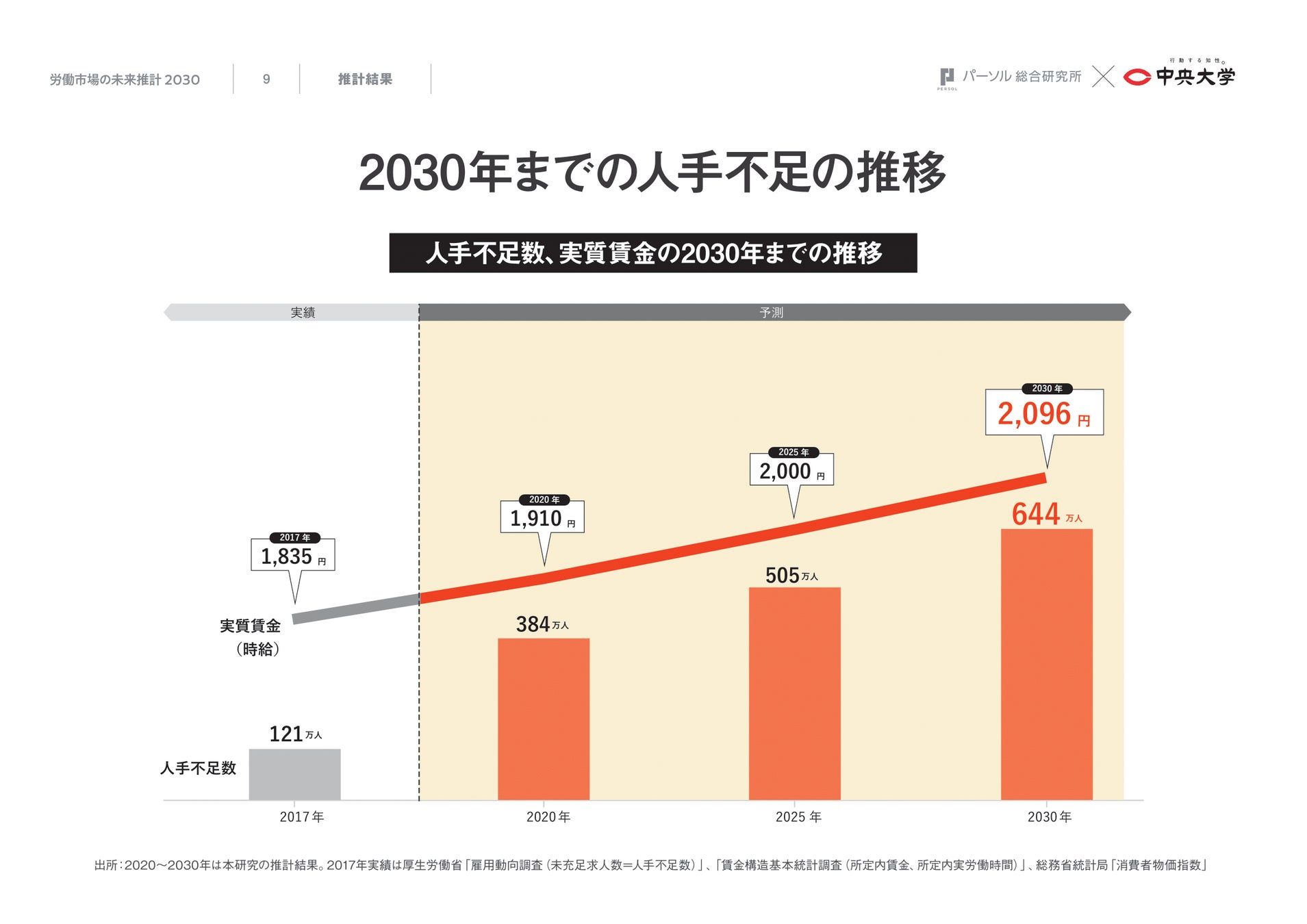 2030年、日本の労働需給は 644 万人不足すると推計されており、特にサービス産業においては 400 万人の不足が見込まれています。