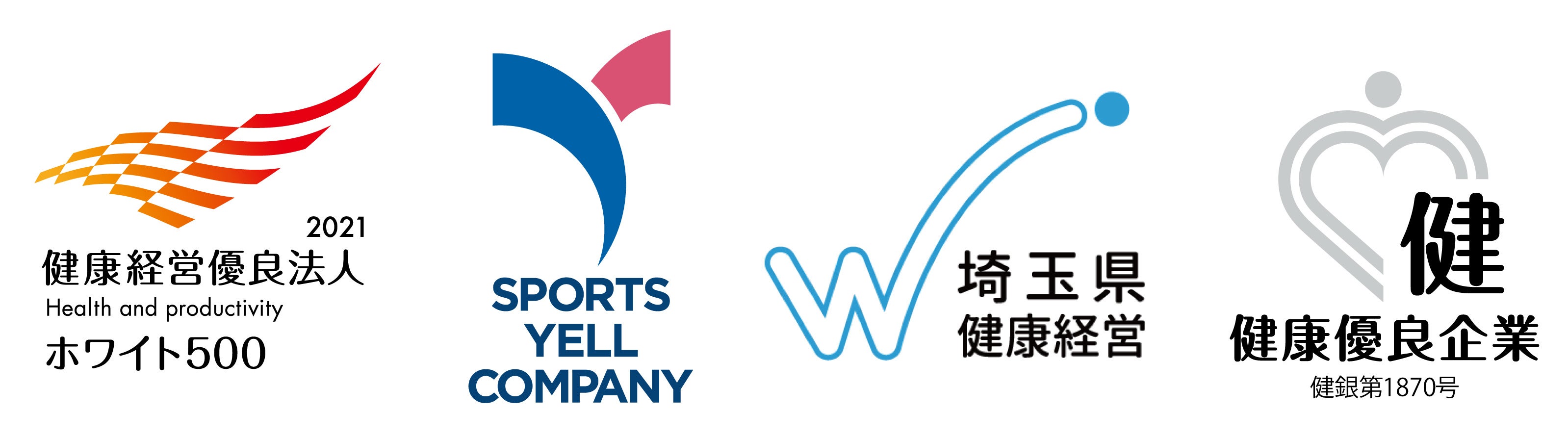 弊社の健康経営への取り組みに対する評価として、経済産業省と日本健康会議が共同で選出する「健康経営優良法人(大規模法人部門)」、スポーツ庁が認定する「スポーツエールカンパニー」、本社所在地である埼玉県が認定する「埼玉県健康経営実践事業所」、および健康保険組合連合会 東京連合会が認定する「健康優良企業「銀の認定」」を取得しています。
