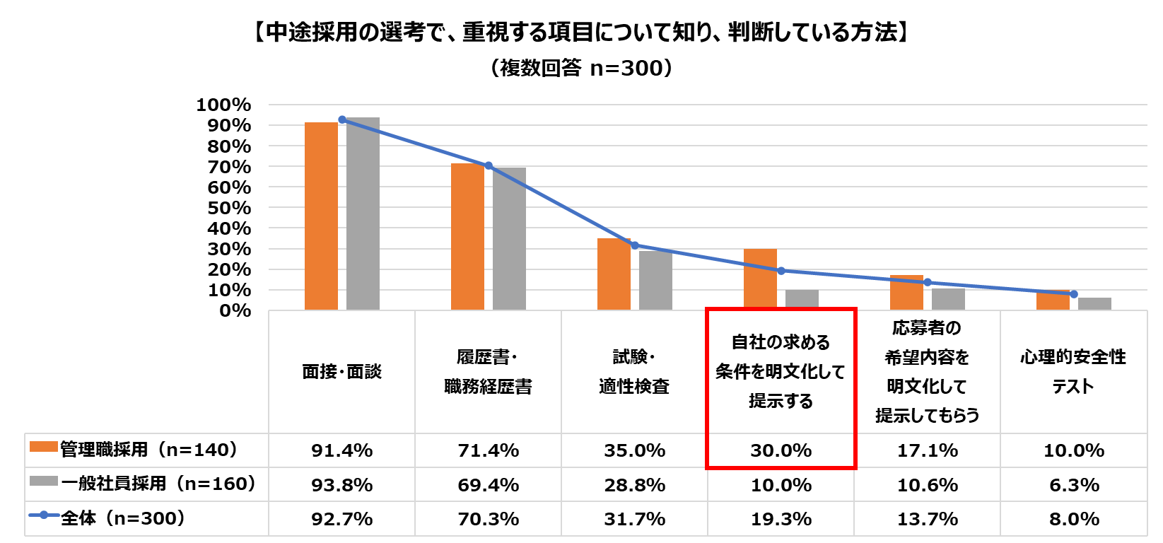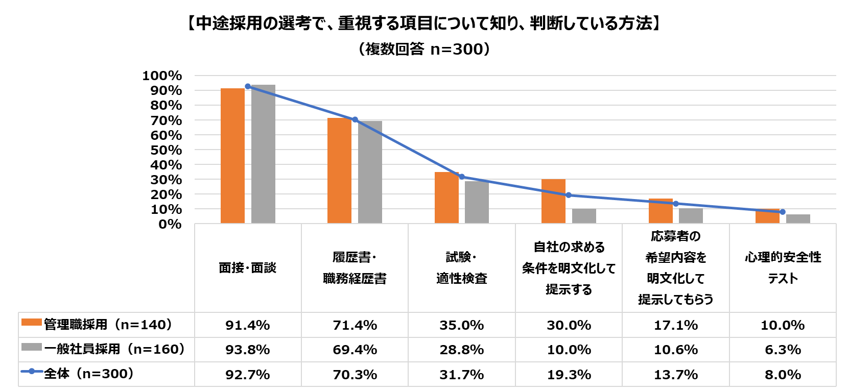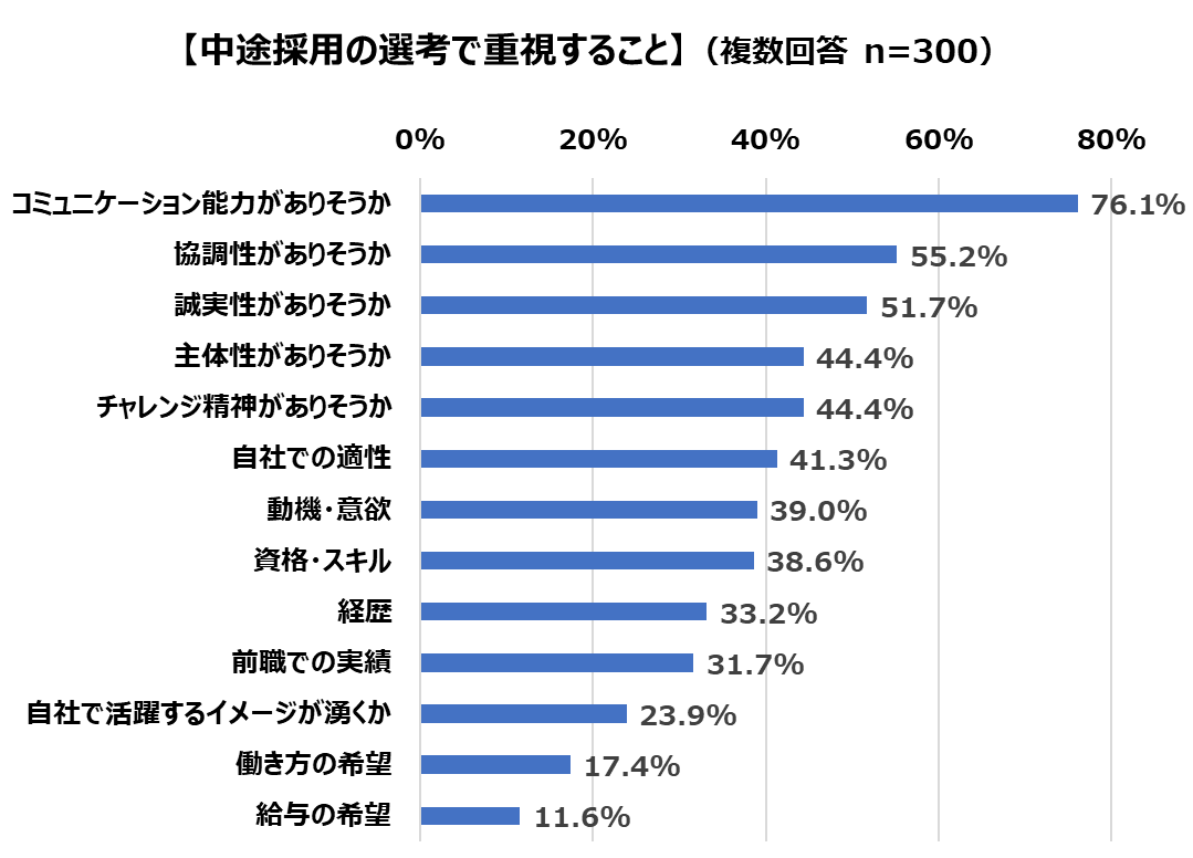 Q3. あなたがお勤めの会社で、中途採用の選考で重視することをお答えください。(複数回答、n=300)