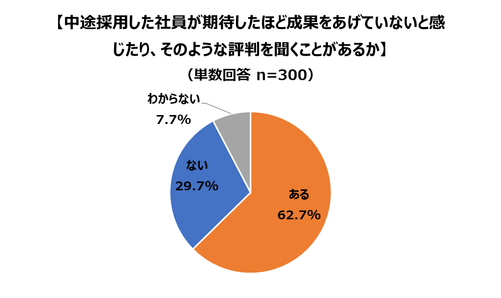 ~中途採用に関する調査 企業編~入社後に「期待したほど成果をあげていない」62.7%