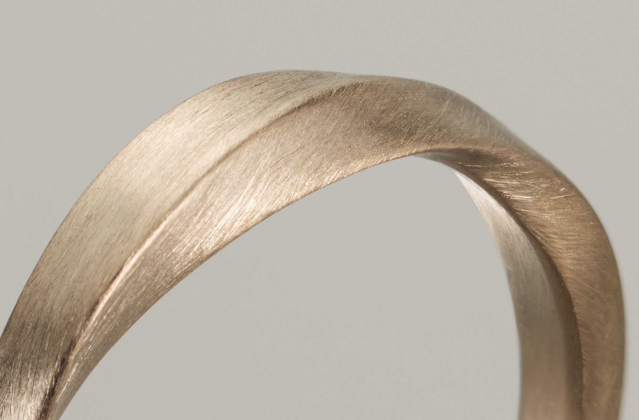 未来へ込める強い意志をイメージした結婚指輪『リアム』。永遠を意味する“メビウスの輪”をモチーフにした立体的で美しいフォルムが、印象的な手元を演出します。