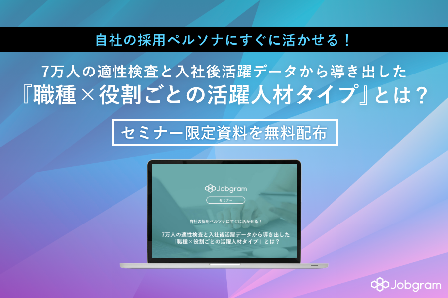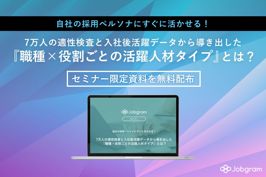 【Jobgram】『自社の採用ペルソナにすぐに活かせる!7万人の適性検査と入社後活躍データから導き出した「職種×役割ごとの活躍人材タイプ」とは?』のセミナー限定資料を無料配布