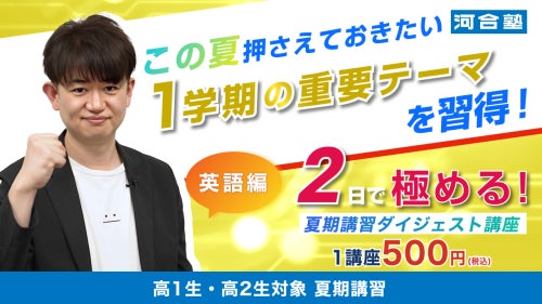 河合塾は高1・2生を対象とした夏期講習『夏トクキャンペーン』を実施中です。1学期の重要テーマをワンコインで確認・習得する「ダイジェスト講座」をはじめ、夏から受験勉強をスタートしたい高1・2生にお得な内容を展開します。
