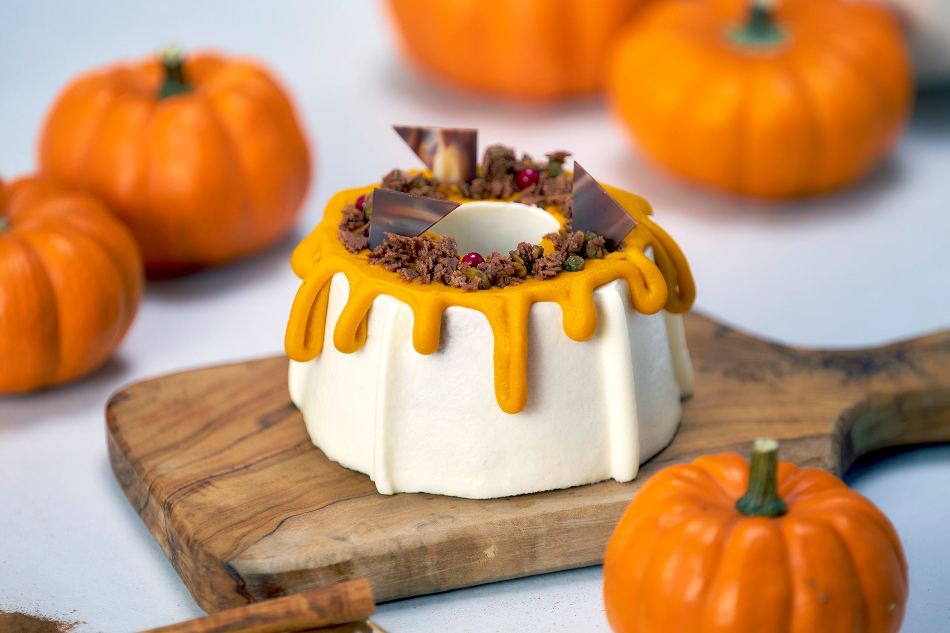 食感も楽しいミルクチョコレートクランチとラズベリーチョコレートがアクセントとなり、かぼちゃの味わいが引き立つ一品です。