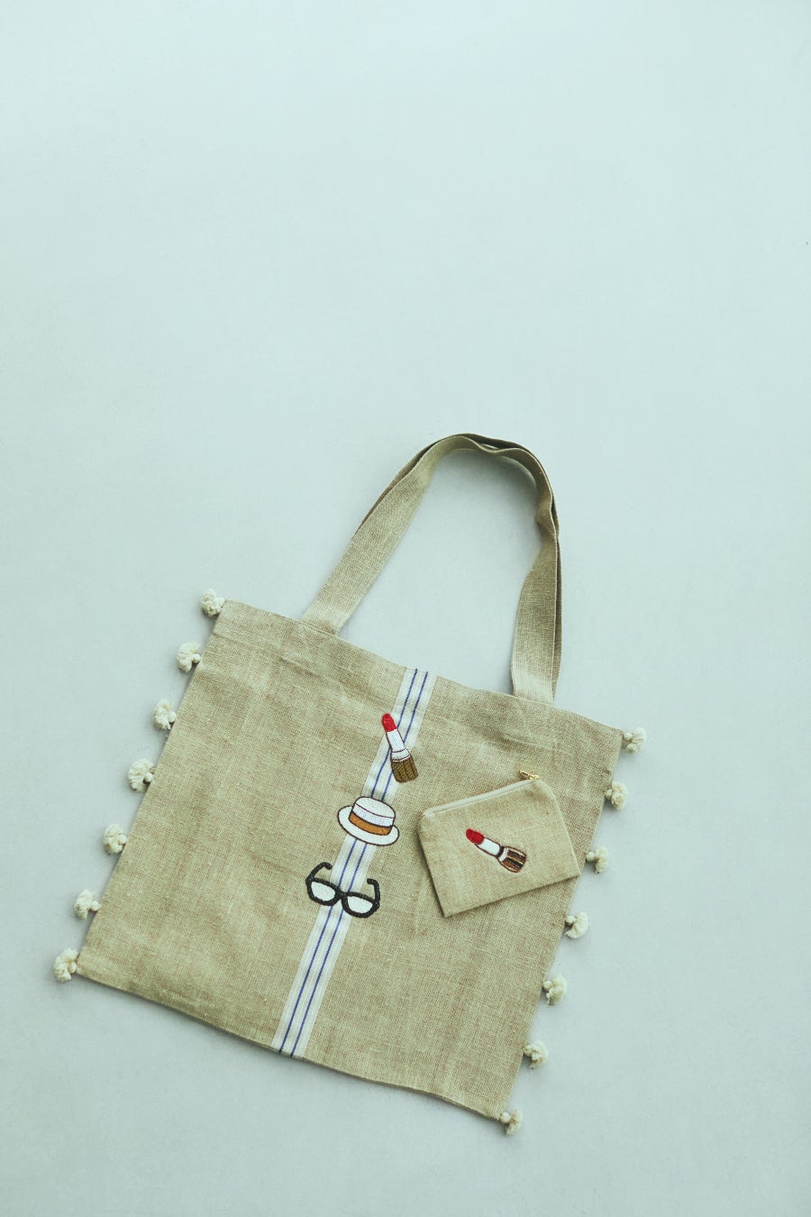 また、インド・コルカタ発のブランド「CITRUS(シトラス)」とのトリプルコラボ企画も実現。ドライなリネン生地に、アルティザンの技巧が光るオリジナルの刺繍を施した、バッグとポーチを特別に作っていただき、RONELより販売いたします。