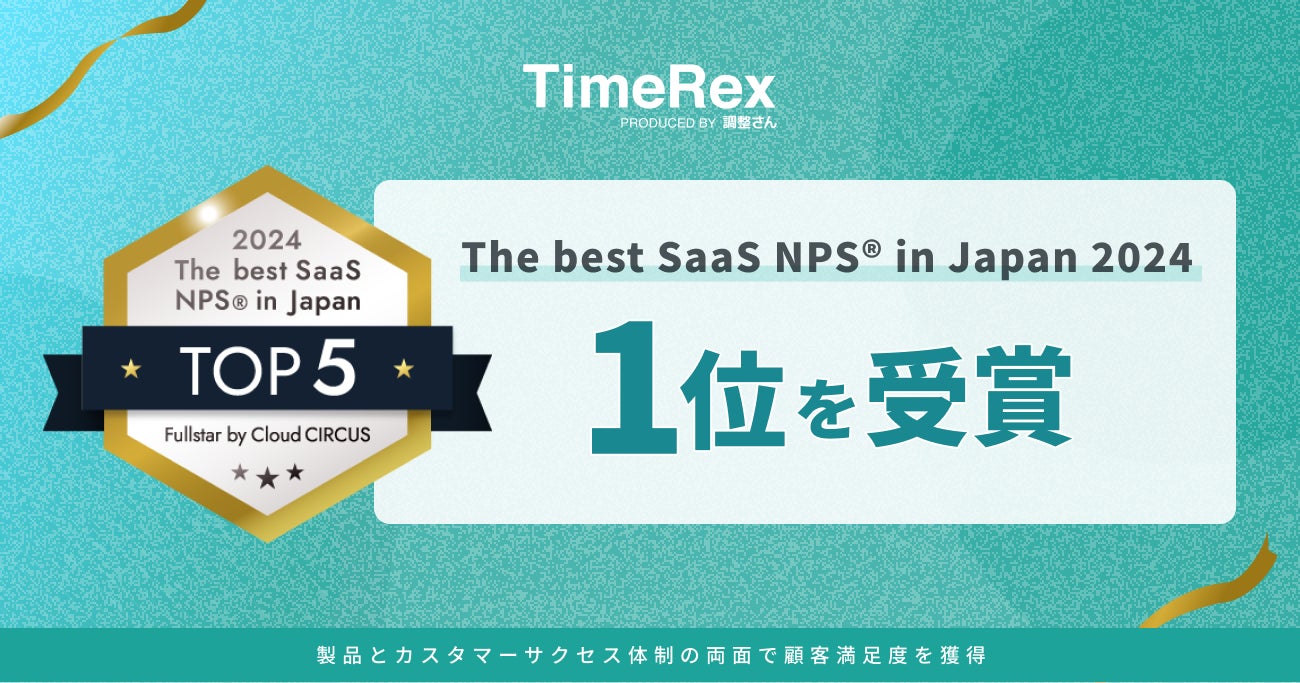 TimeRex「The best SaaS NPS® in Japan 2024」1位を受賞 約500社の中から評価