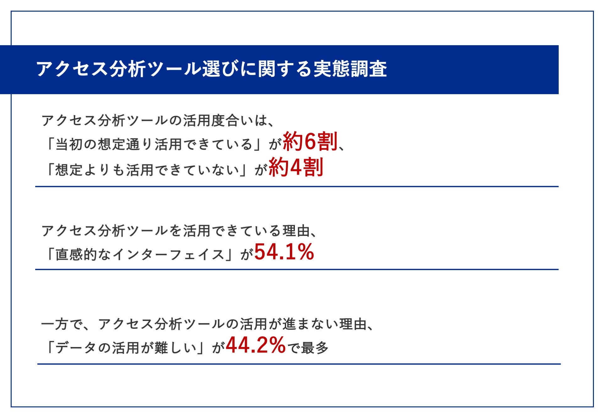 【アクセス分析ツール選びのポイントと活用実態を調査】導入後、約4割が「想定よりも活用できていない」ツール活用のハードルは、「データの活用の難しさ」や「複雑な機能」にあった