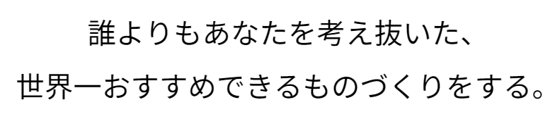 - お客さまにとって本当にいいものとは何かをとことん掘り下げ、最適な作りかた、広めかた、売りかたで、これが世界一だと胸を張れるものを届けていく