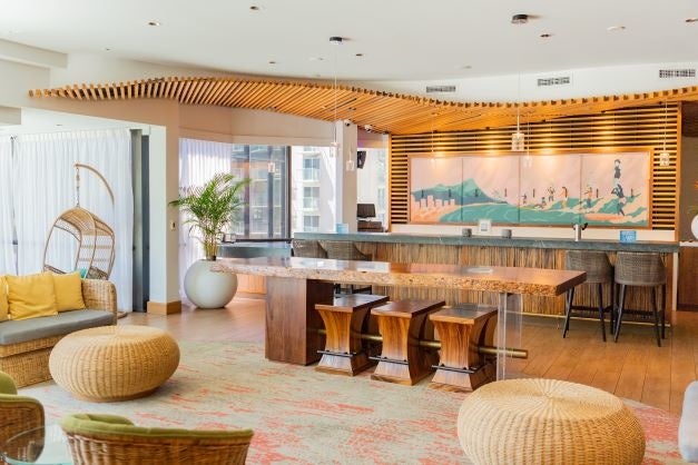 天然木を贅沢に使った解放感溢れるロビーから続くスプラッシュプールには、プライベートカバナもあり、自分だけの心地よい時間を過ごすこともできます。イブニングタイムにはプールサイドに設置されたファイヤーピットに火が灯され、ムードあるワイキキの夜が幕を開けます。一日の冒険のあとは、心地よい客室に戻って、ハワイでの次の冒険のために充電を。