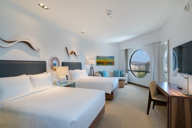 上質な木のナチュラルなアクセントを施した広々としたモダンな客室は、まるで自宅でくつろぐような快適な空間。大きな窓からは、輝く海や躍動的なワイキキの街並み、そしてダイヤモンドヘッドの絶景を楽しんだり、さらに広いスイートルームでは、ゆったりとした空間が魅力です。