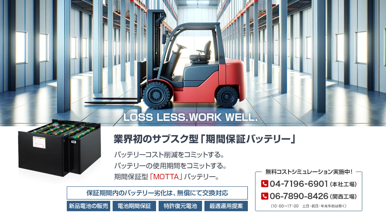 電動フォークリフトのバッテリーコストを最大3割低減 業界初「MOTTA 期間保証バッテリー」サブスク型で提供開始