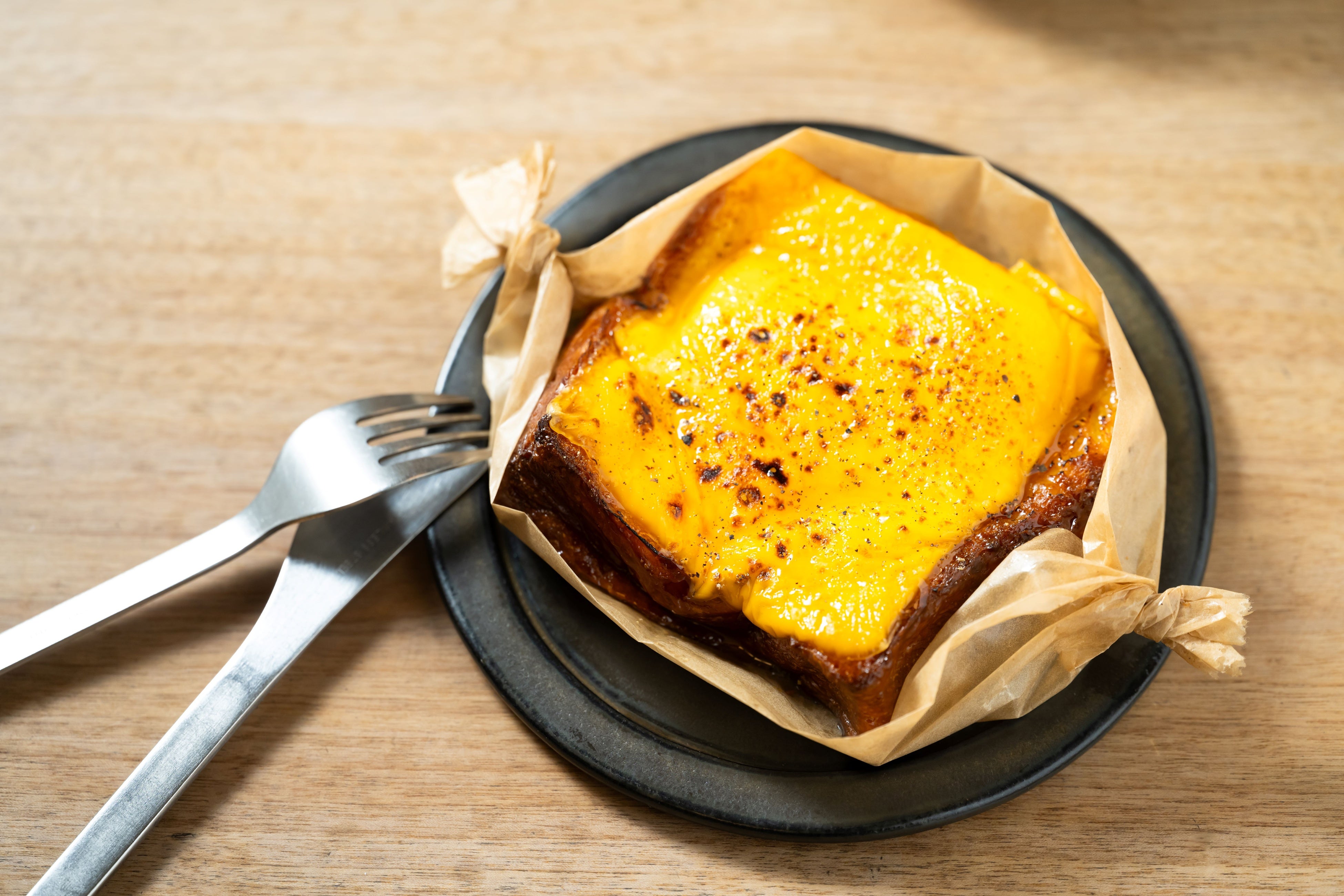 コラボメニューの「贅沢3層チーズのモンティクリスト」は、フレンチトーストに生ハムと「フィラデルフィア 贅沢3層仕立ての濃厚クリーミーチーズ」を合わせた甘しょっぱい味わいが特長です。