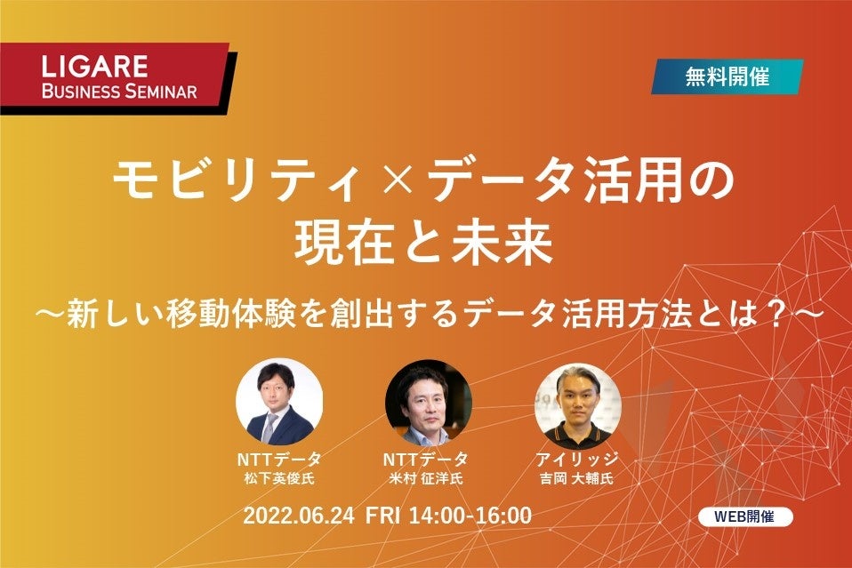 NTTデータ、アイリッジが登壇「モビリティ×データ活用の現在と未来 〜新しい移動体験を創出するデータ活用方法とは?〜」6月24日(金)開催