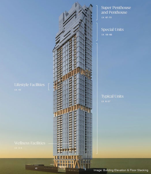 地上70階建ての住宅棟と、オフィスや商業施設、ジャカルタ初出店となるハイアットグループのホテル「Andaz(アンダーズ)」が入る地上77階建てのコマーシャル棟で構成されます。
