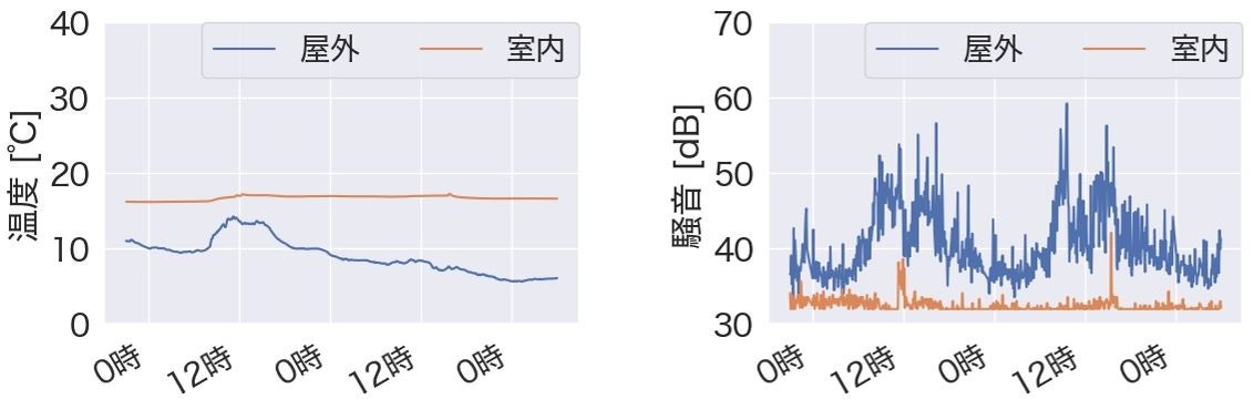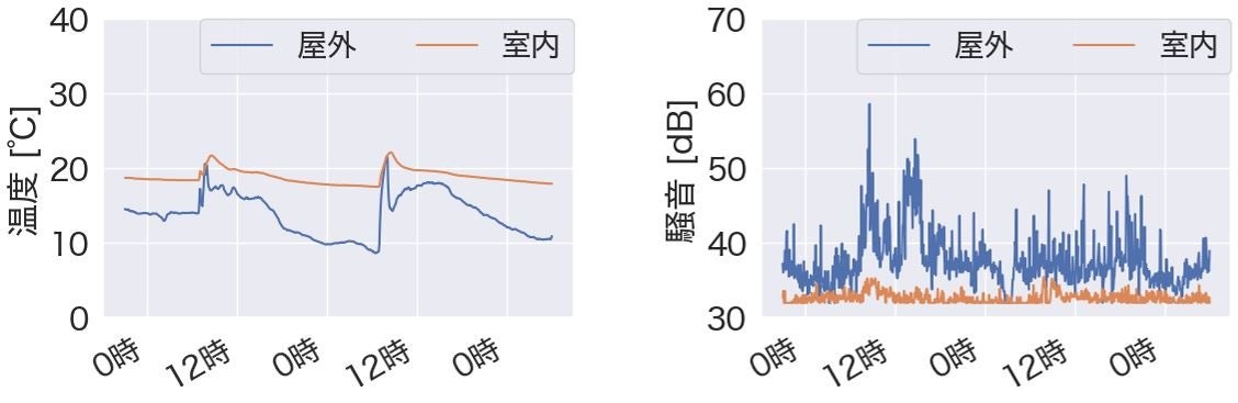 ・夜間に屋外の温度が低下する中、室内の温度変化は最大でも0.1℃