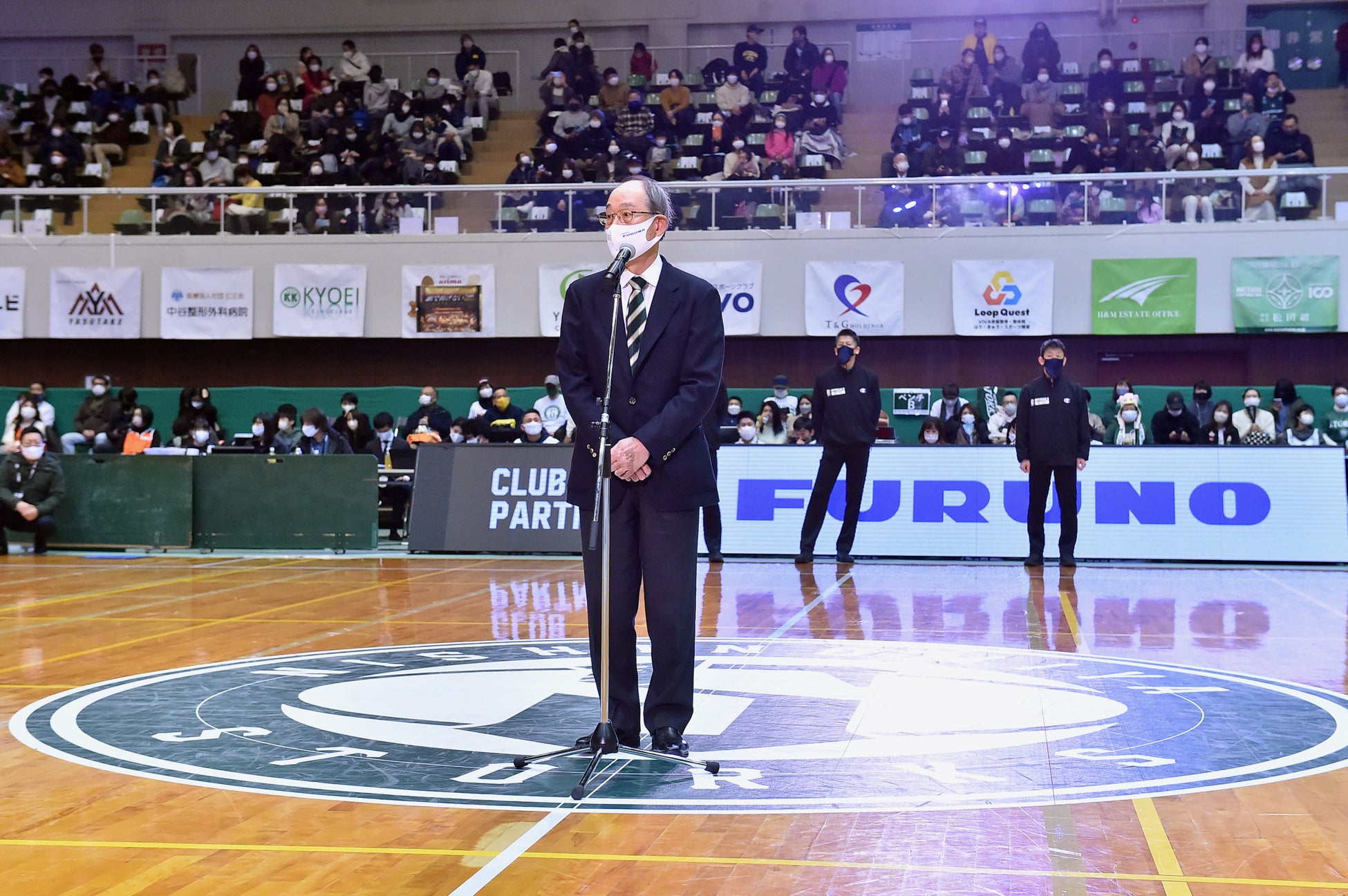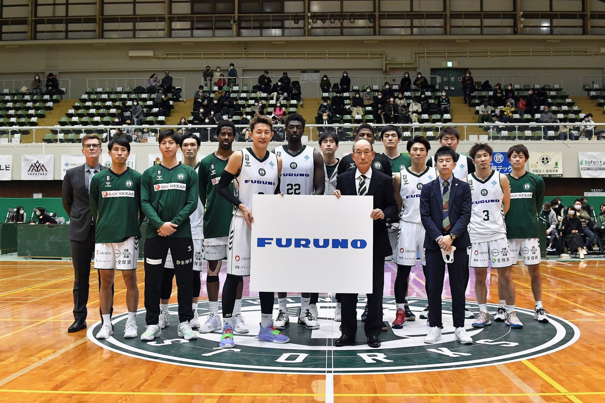 2020-21シーズンと2021-22シーズンは、古野電気株式会社の企業ロゴが胸に入ったユニフォームで全試合を戦いました。また、この2シーズンはコロナ禍により不安定なシーズンを過ごす中で、古野電気株式会社にサポートいただき、共に苦しい時期を乗り越えてきました。今シーズンは、12月18日(土)19日(日)は古野電気株式会社の冠試合を開催し、2日間で約2,000人にご観戦いただきました。選手による会社訪問も開催し、社員様とクラブとの交流も深めてきました。コロナ禍で無観客試合も経験したクラブとしては、古野電気株式会社の冠ゲームによるリアルな空間での盛り上がりで、スポーツエンターテイメントの原点に立ち返ることができました。